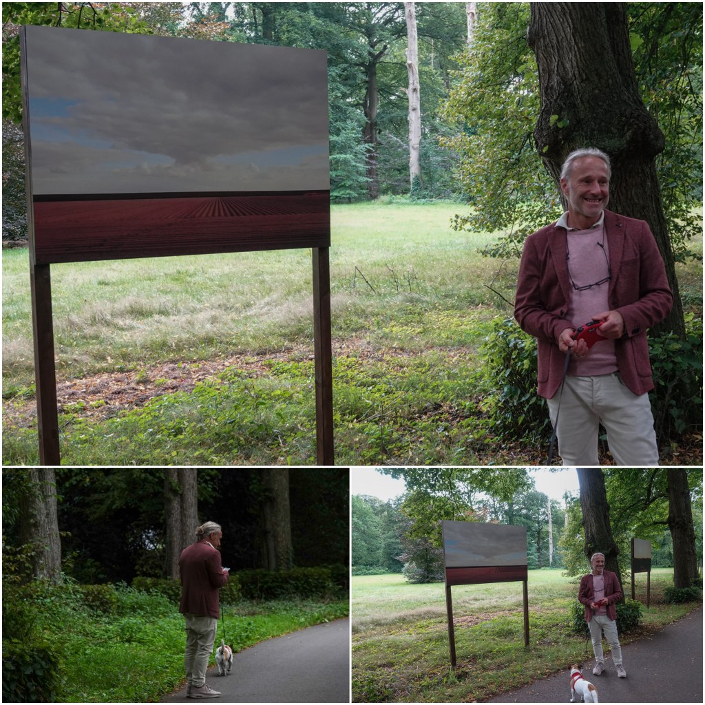 Opeens zegt er iemand achter ons: ‘Vinden jullie het mooi?” Wij beamen dat en de man zegt vol trots: ‘Ik ben de maker’. We babbelden nog wat. Zo kwamen we te weten, dat deze trap ergens op Tholen is aan de Oosterschelde en dat de fotograaf dus John Raats heet. Toen vroeg hij ons of iemand een foto van hem wilde maken bij één van zijn foto’s, voor op facebook . En ik greep ook mijn kans.