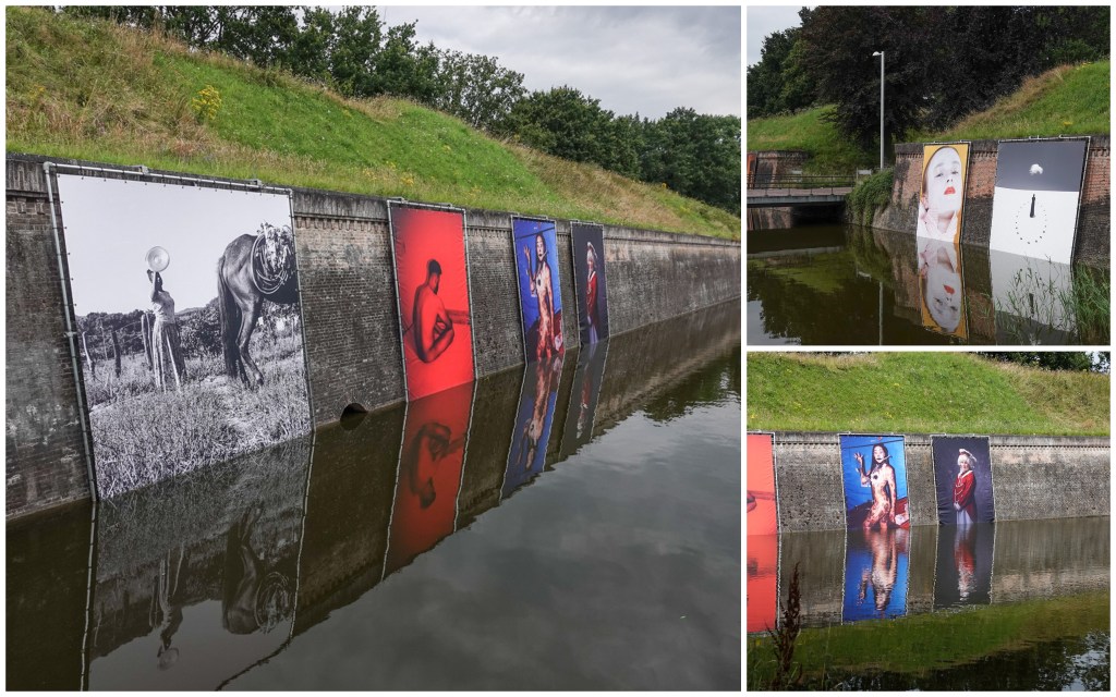 Rondom de vesting zijn er op verschillende plekken doeken opgesteld aan de waterkant. Een mooi effect met de spiegeling ook.