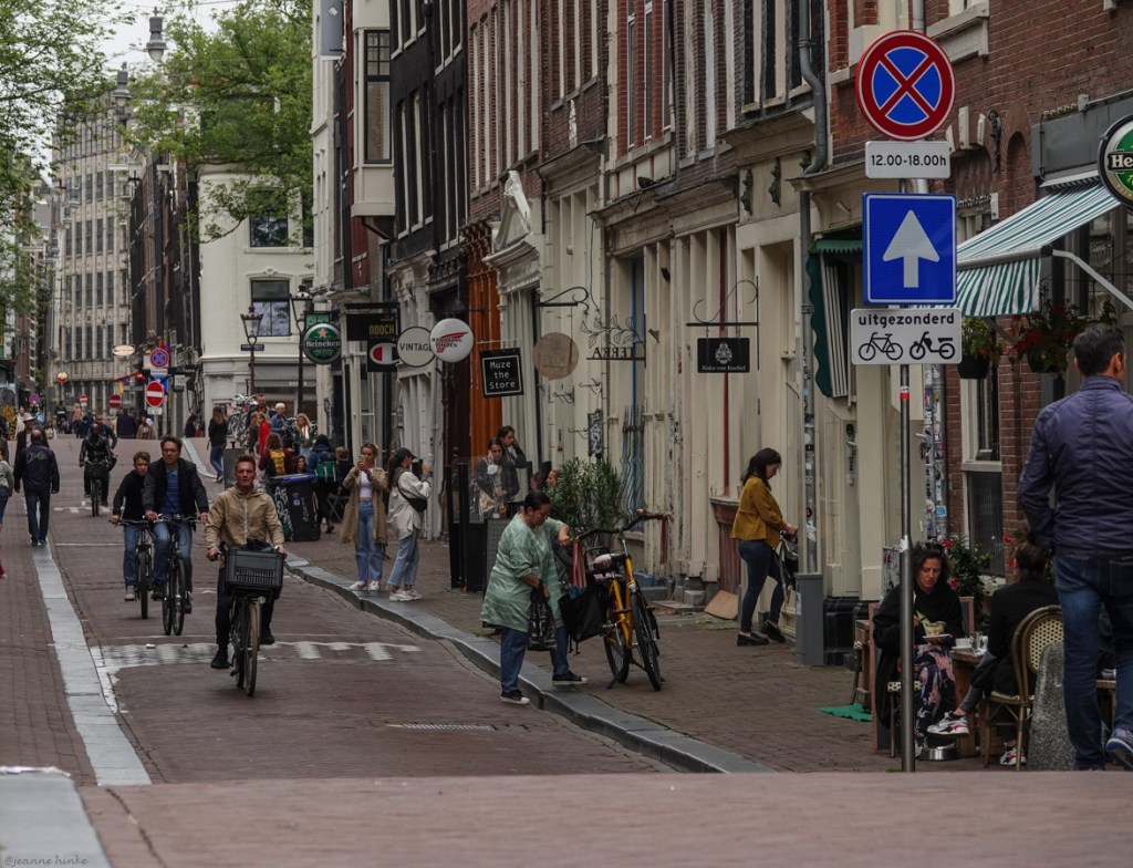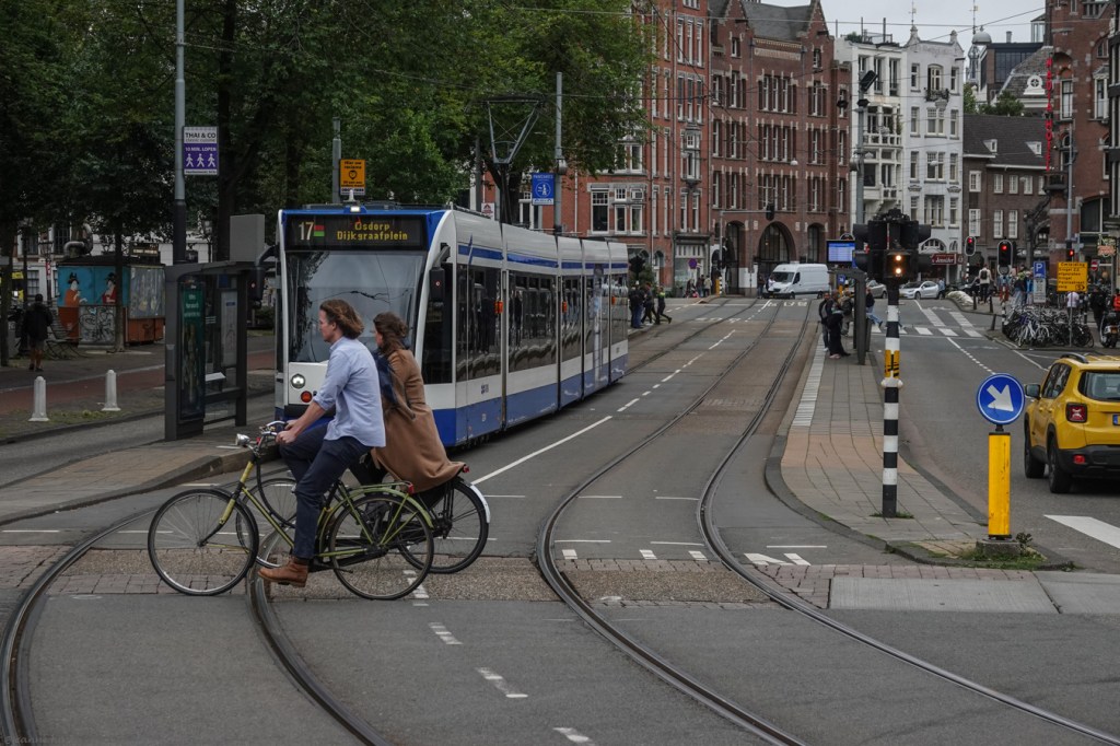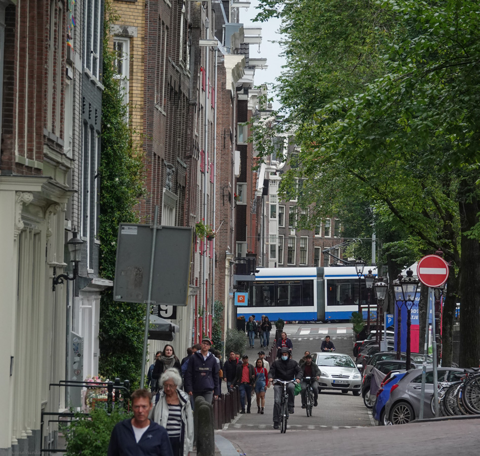 Voor de laatste workshop gingen we op zondagochtend weer naar de Amsterdamse vereniging van de Zondagsschilders. Op het programma stond, het vastleggen van de verkeersdrukte op enkele plekken in de stad. Een uitdagende opdracht! Er moest veel te zien zijn op de foto’s. Er moest veel scherpte-diepte in zitten en compressie. Dat laatste betekent, dat het lijkt of dingen, die je achter elkaar ziet, dichter op elkaar zitten dan in werkelijkheid.