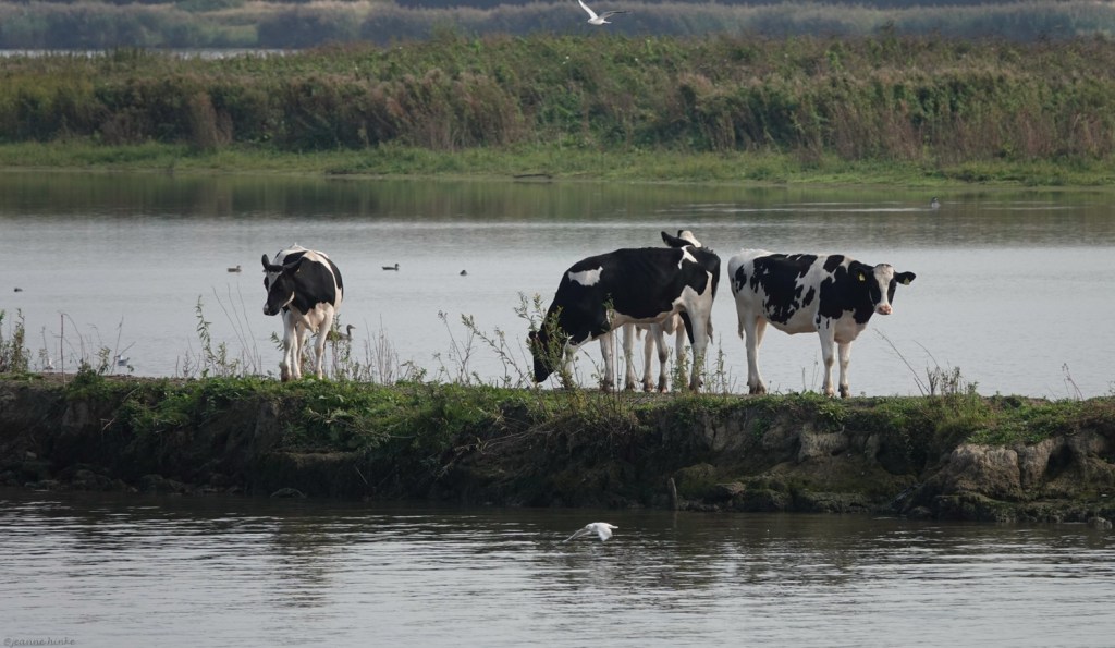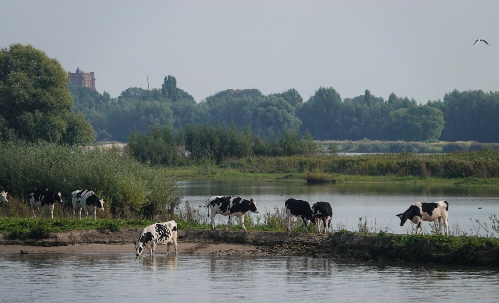 Langs de Beneden Maas bij Gorinchem zochten de jonge vaarzen in hun overmoed een heel smal stukje land op