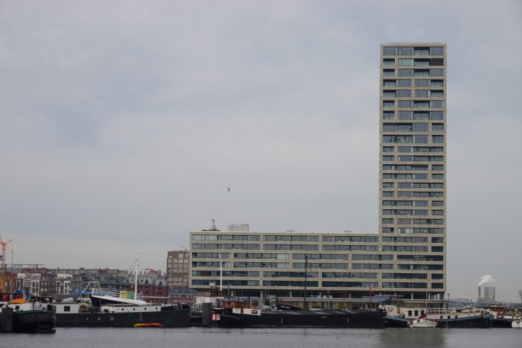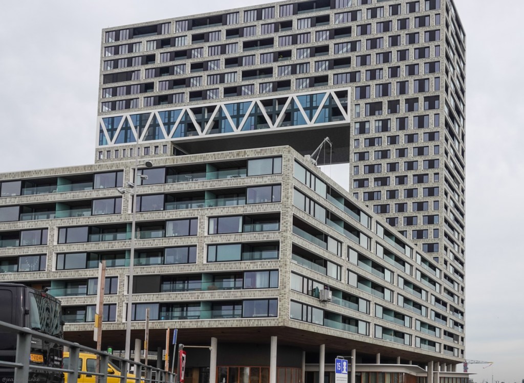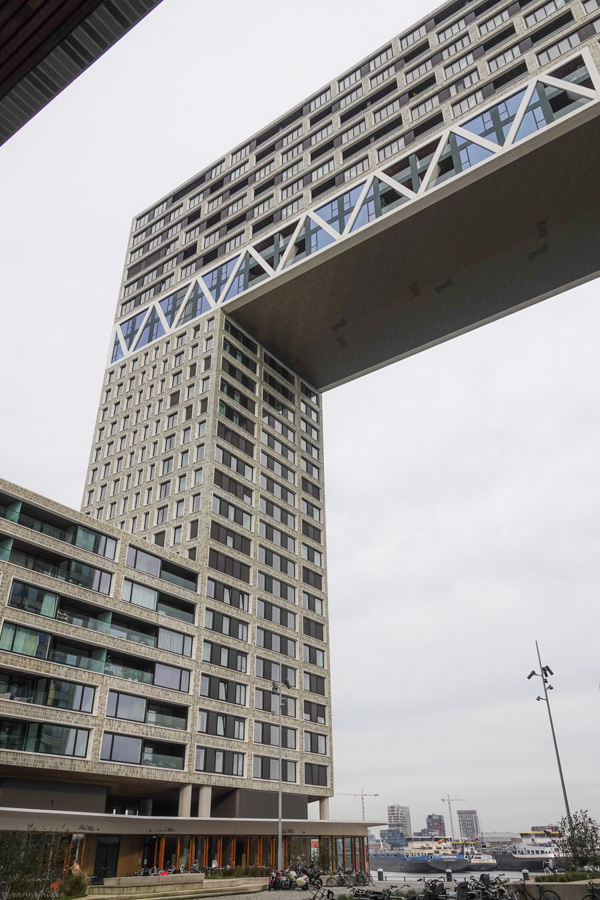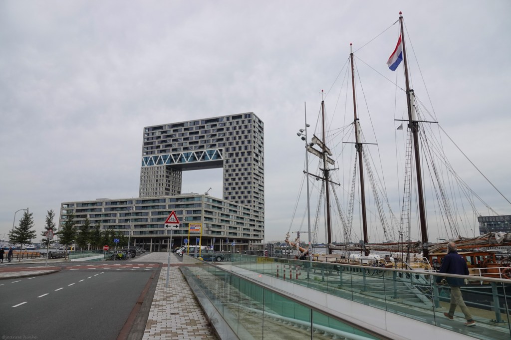 Altijd weer indrukwekkend, zo naar voren geschoven in het IJ staand.