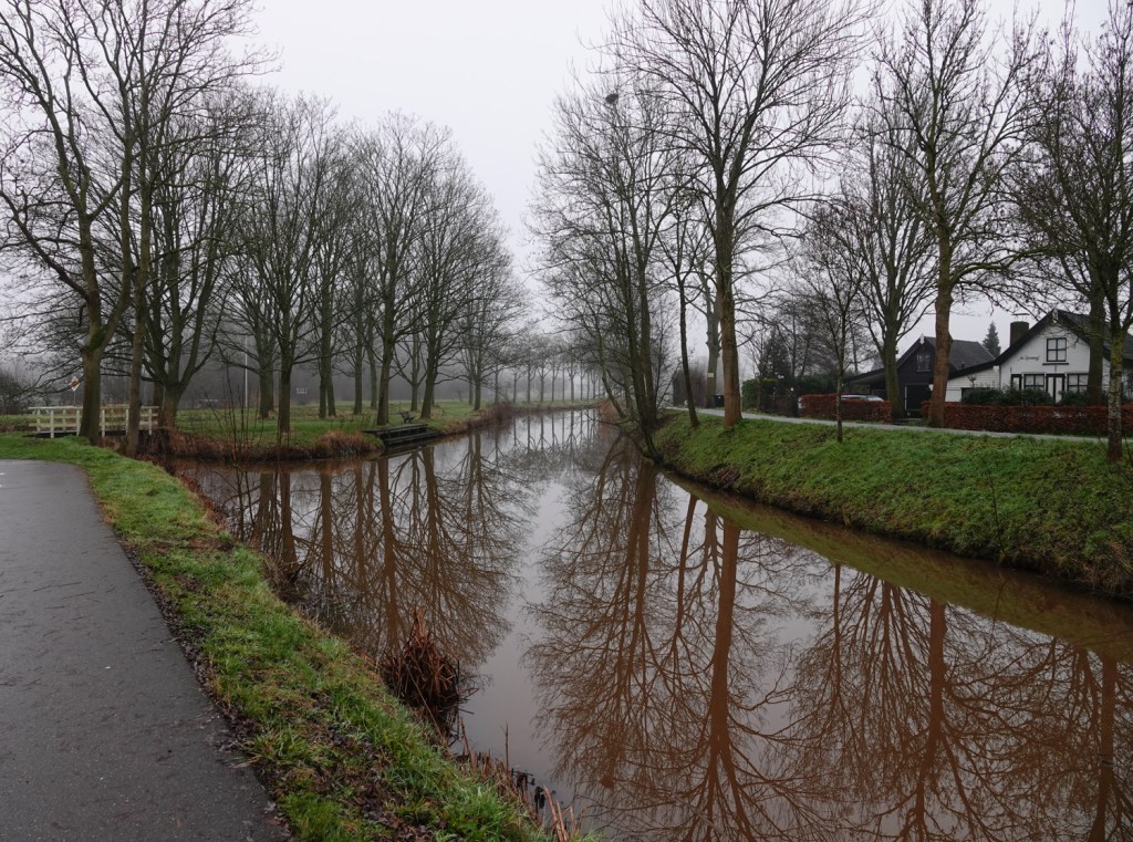 Ondertussen genoten we wel van de mooie boerderijen langs dat kanaal. Typisch voor deze streek in Zuid-Holland hebben ze Engelenramen. In de nok zitten dan drie ramen, waarvan het middelste hoger is en de zijramen met wat fantasie lijken op engelenvleugels. De Zuid-Hollandse Waarden (Lopiker- en Krimpenerwaard) en de Utrechtse Waarden (tot aan Vinkeveen) staan bekend om deze bouwstijl.