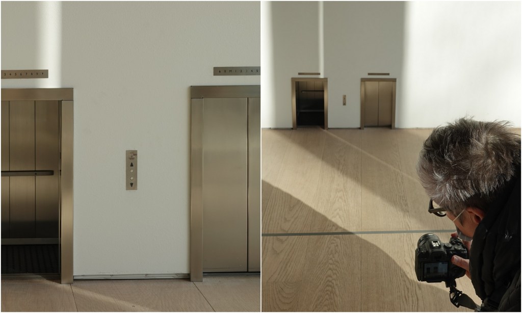 De minilift geeft een vervreemdend effect, zeker als de liftdeur ook nog open gaat.