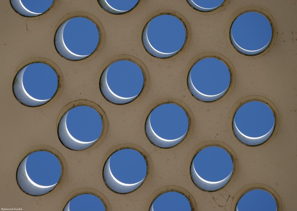 Wij ontdekten ook nog bolletjes, die speelden met de blauwe lucht. Het leverde mooie structuren op, een kunstwerk gelijk.