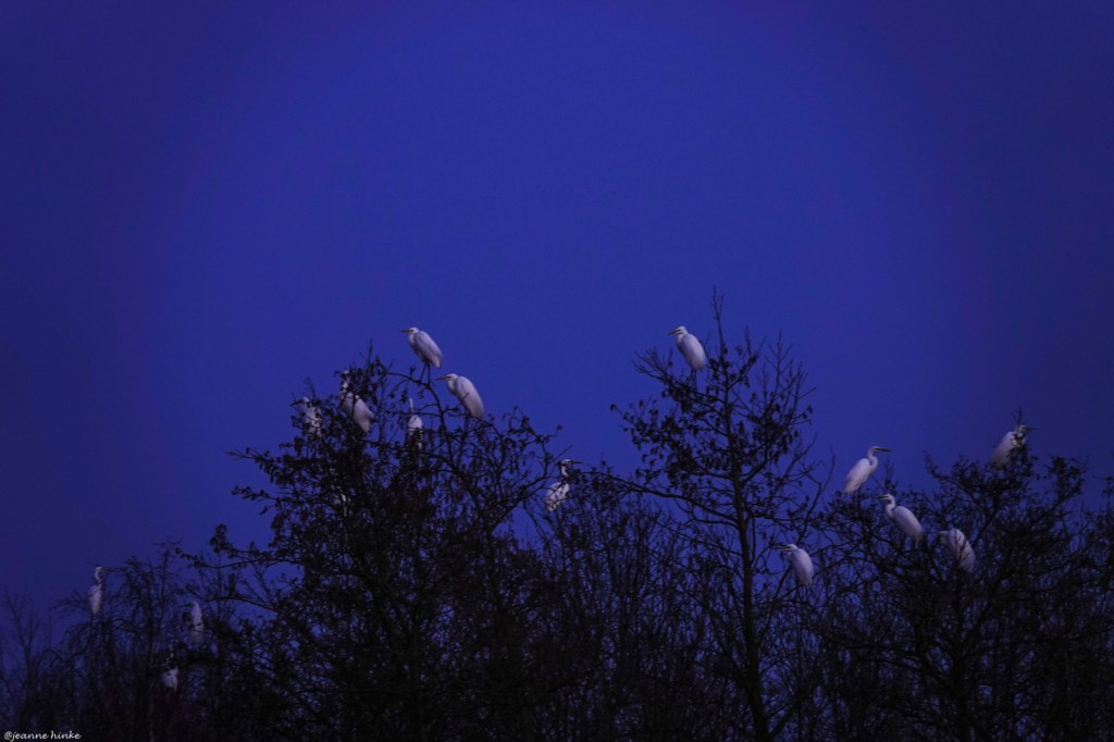 Ik denk, dat ik nu weet waar de slaapplek is van alle Waterlandse zilverreigers! Het was een sprookjesachtig schouwspel.