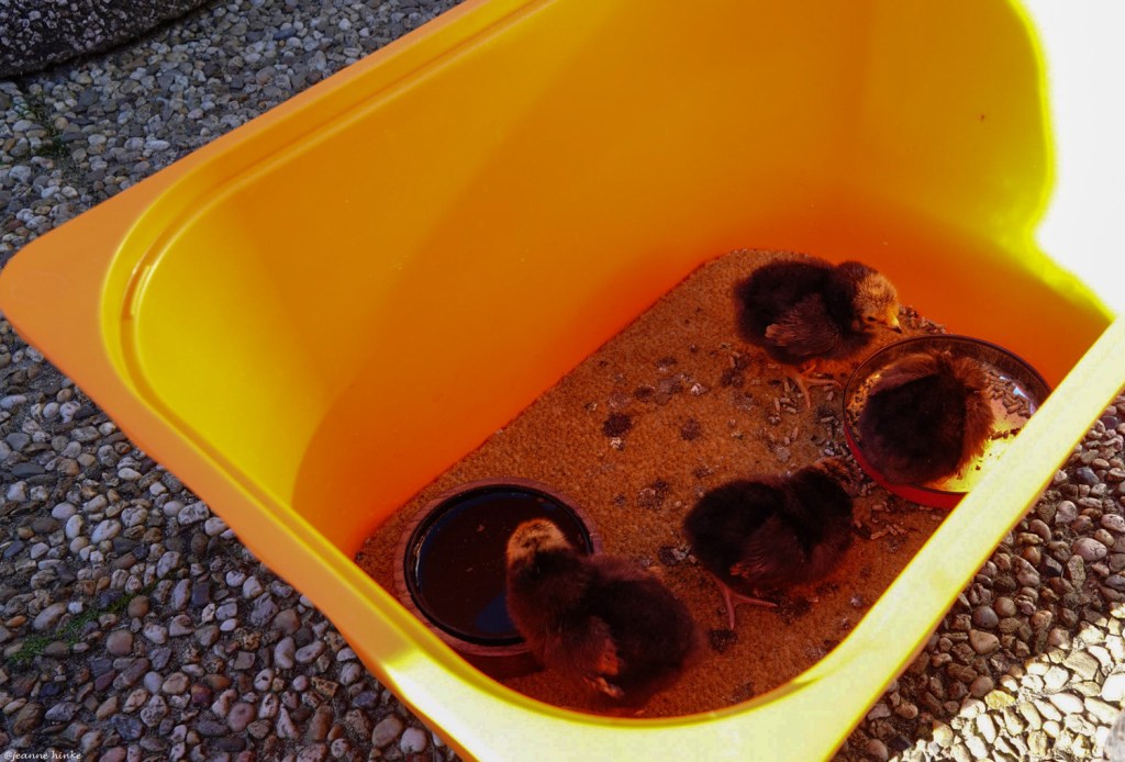 Nee, het is nog geen Pasen, maar bij het zien van kuikentjes, kom je al in de stemming. Mijn buurman vroeg mij om foto’s te maken van het kleine grut, dat net uit het ei was gekropen, met hulp van een broedmachine. Er waren er van drie dagen oud en ook van een dag. Ze groeien zo snel! Om ze nog op hun allerkleinst vast te leggen moest ik eigenlijk meteen in actie komen. Ze zaten in een bak en mochten even voor de foto naar buiten.