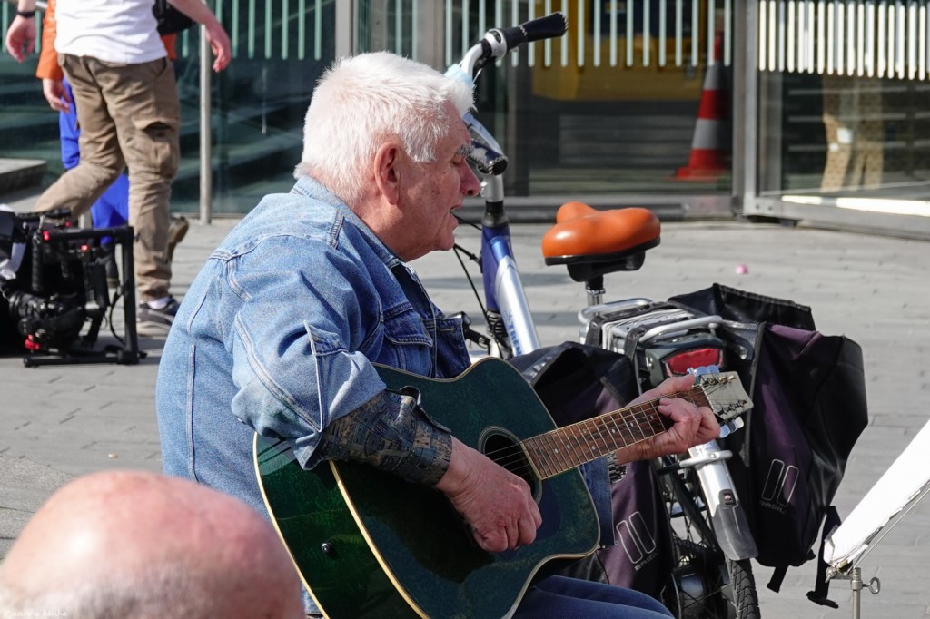 Ook mensen speelden hun spel. Een gitarist zat heerlijk zijn repertoire ten gehore te brengen aan een ieder die dat horen wilde