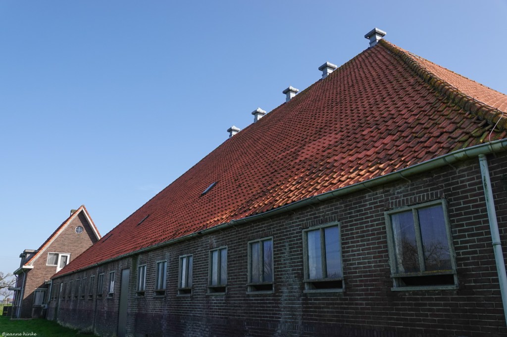 De boerderij met het imposante dak, die ik vanuit mijn huis zie, staat leeg. Ik heb dit gebouw, dat in 1938 op de plek van het voormalige slot gebouwd is, al van alle kanten en in alle seizoenen gefotografeerd. Ook schreef ik verschillende blogs over de geschiedenis van deze plek. Hier kun je het lezen en doorlinken.