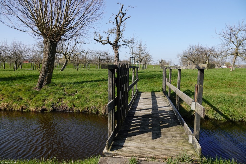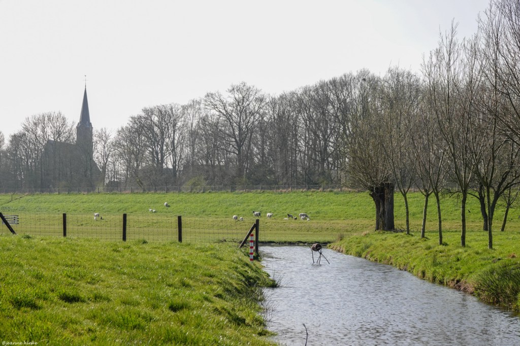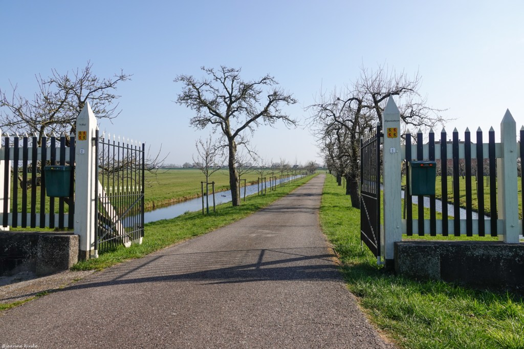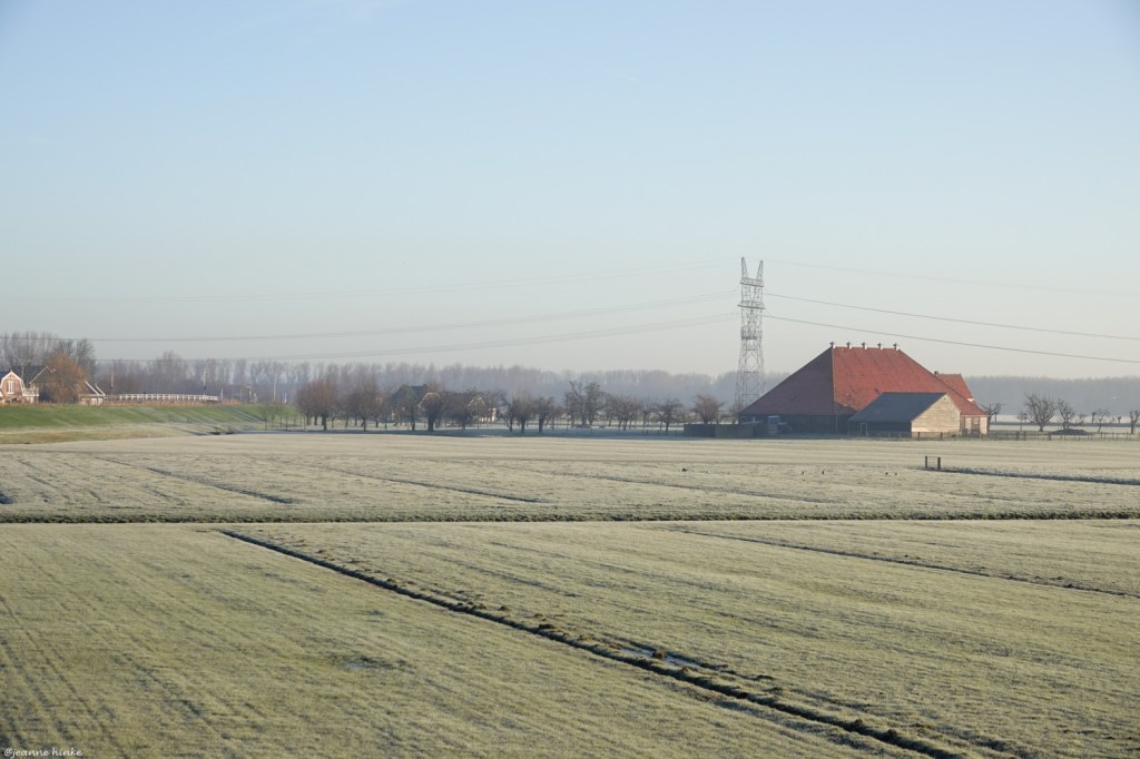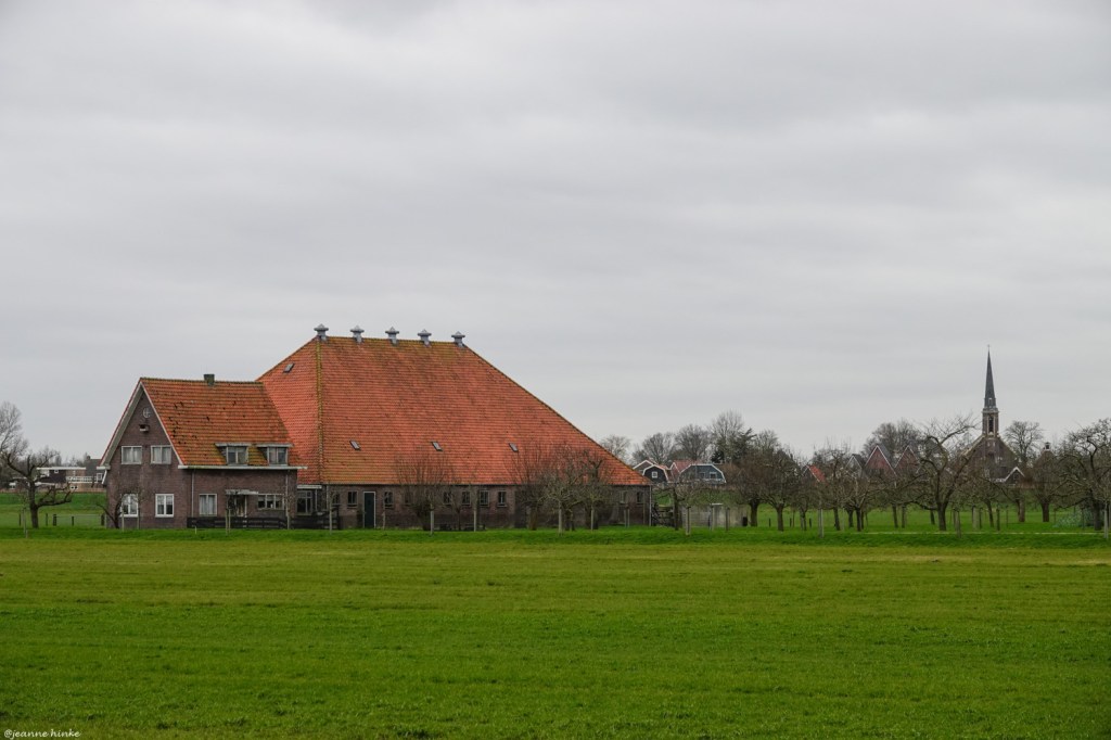 De plek ligt in de Nes een polder, die weer ingepolderd is door de Purmer, laag achter de dijk. Leuk om het dorp eens te bezien vanuit dit standpunt.