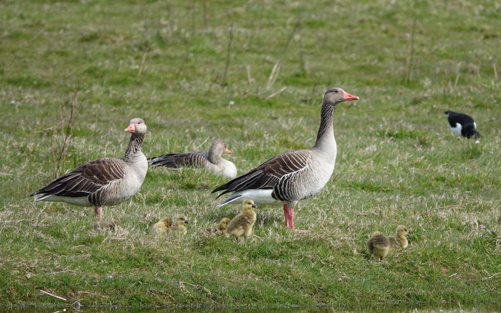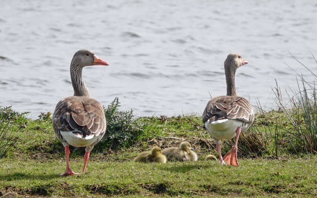 Het is maar druk in vogelland. Alles draait om de voortplanting. Bij de wilde ganzen lopen ouders al trots met hun kuikentjes te paraderen.