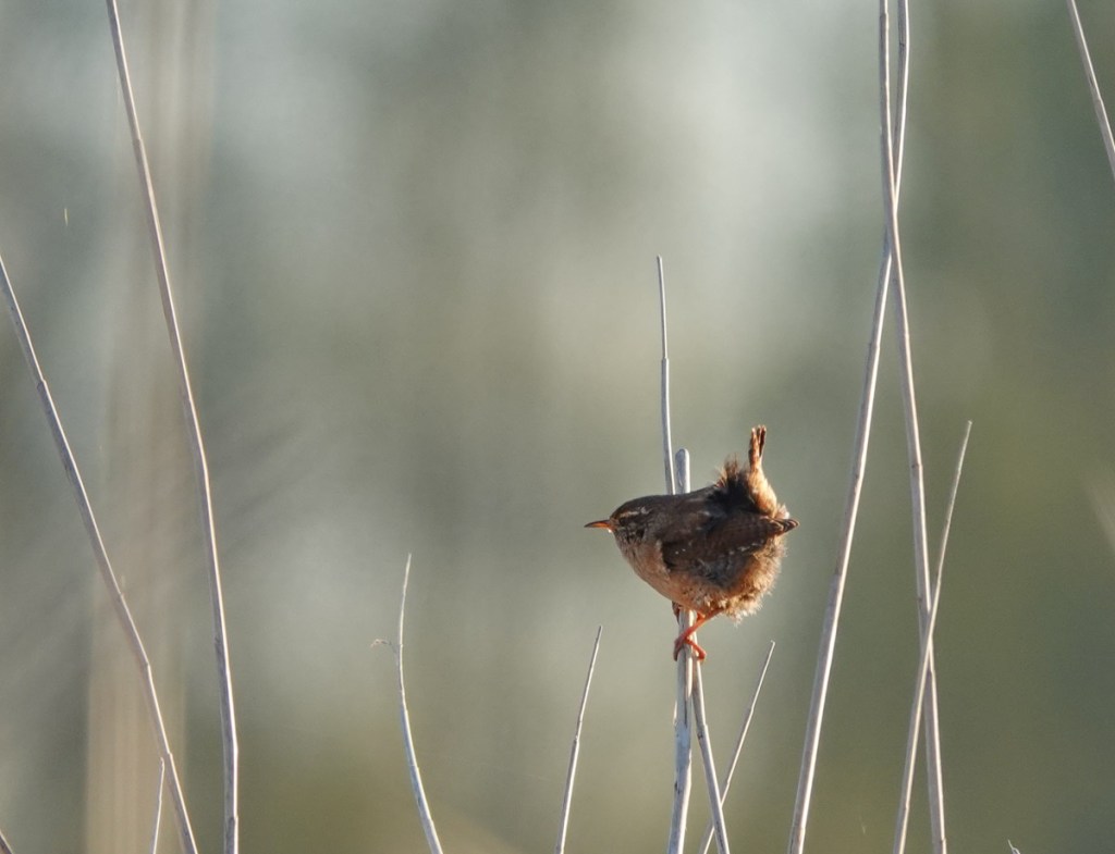 Natuurlijk liep ik richting de rietlanden in de hoop wat vroege vogels te kunnen betrappen. Ik zag een winterkoninkje
