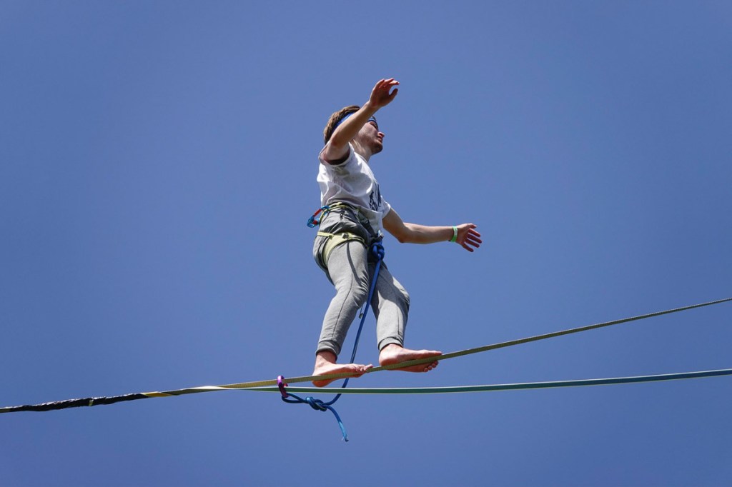1. Ik zie dat de koorddansers in ieder geval wel goed gezekerd zijn, nu heb ik totaal geen goed evenwichtsgevoel dus ik krijg de bibbers al om daar naar te kijken. Ik wens je een fijn Pinksterweekend toe.