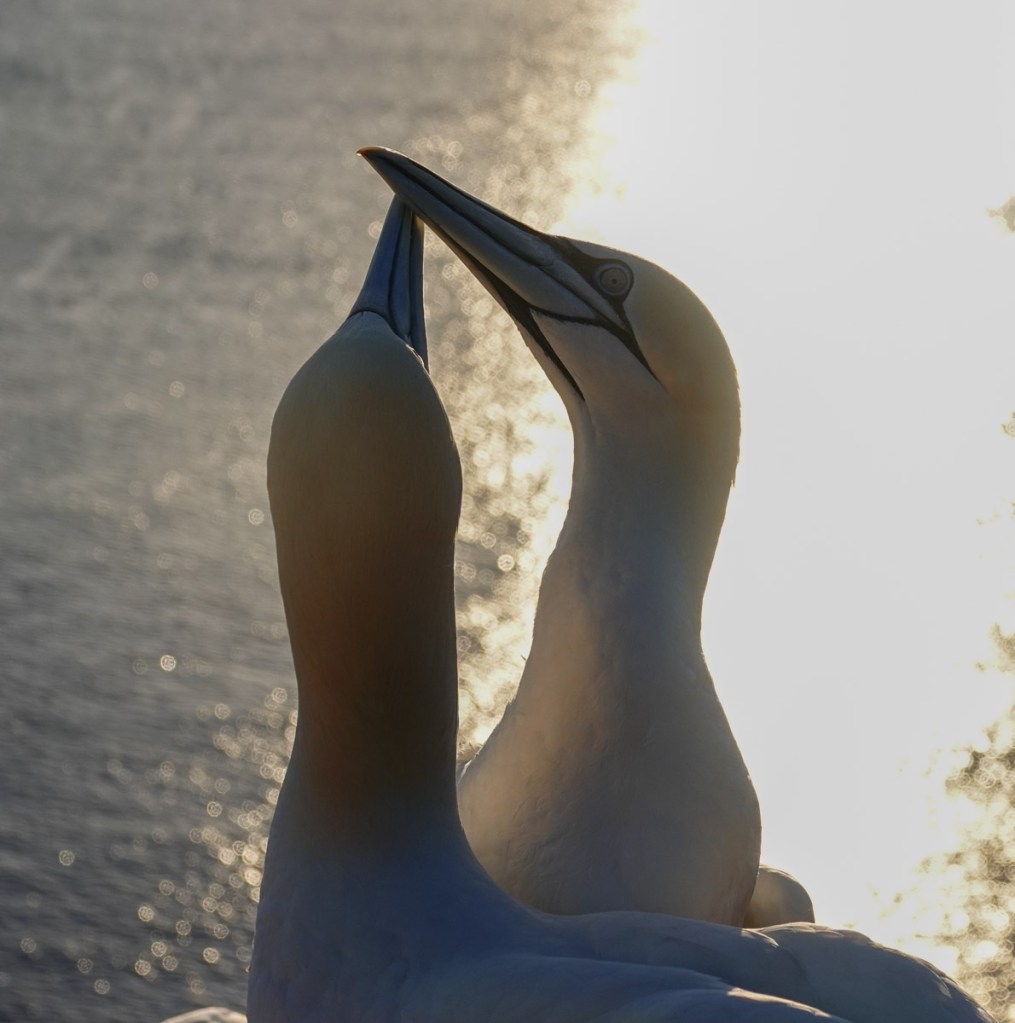 De bebouwing beslaat ongeveer een derde van het eiland, de rest is natuur. Daar kwamen we voor. Want op de rode rotsformaties vind je de Jan-van Genten, althans van april tot oktober. Het is hun broedseizoen.