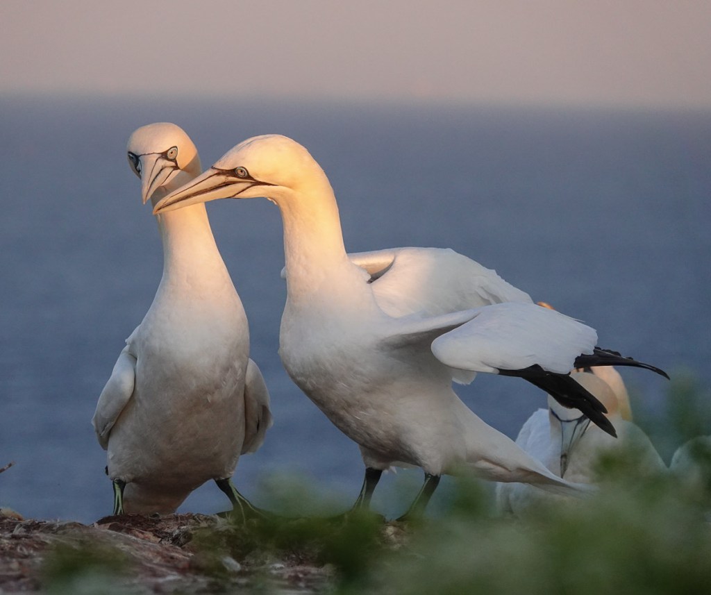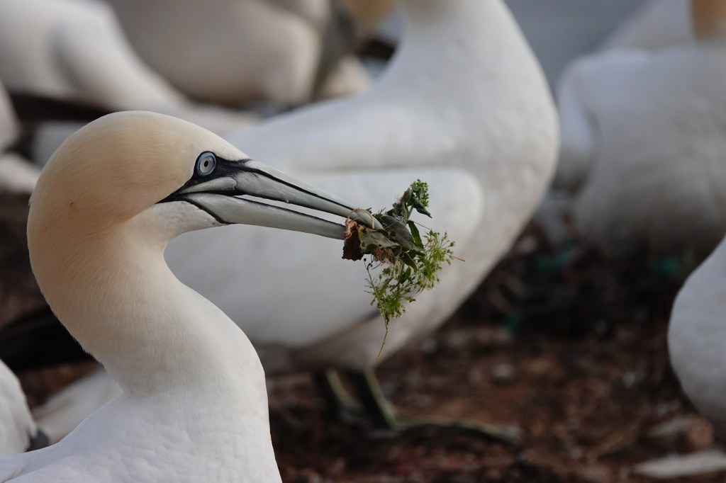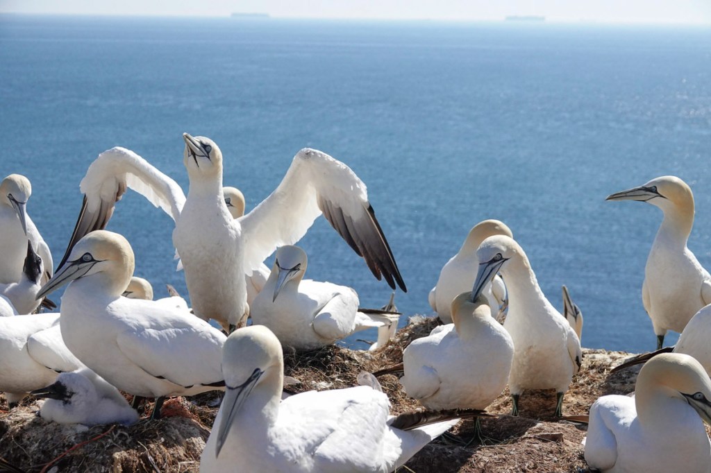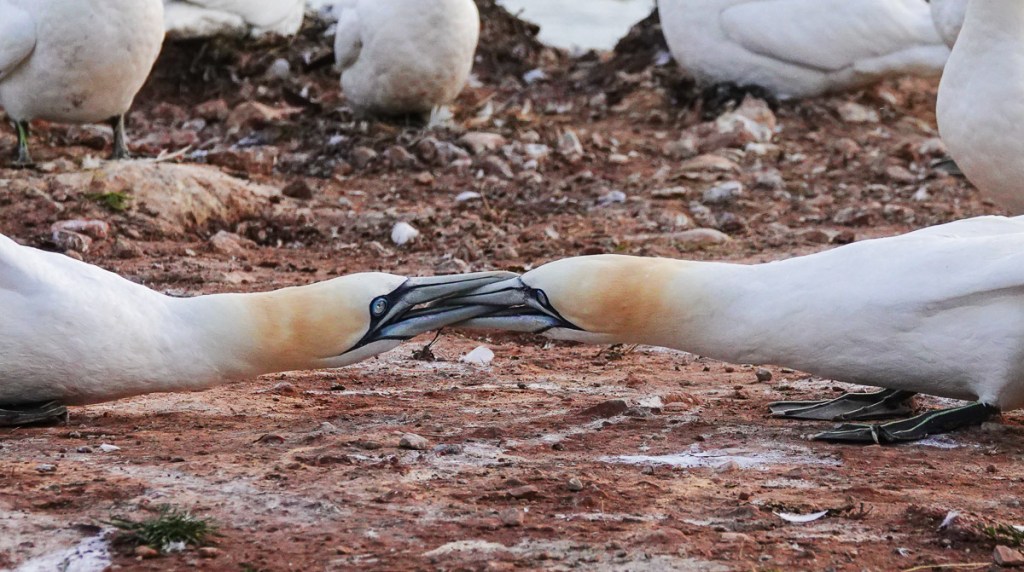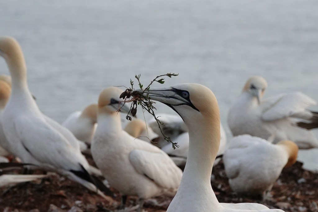 De hoofdreden van ons bezoek aan Helgoland waren de Jan van Genten. Zij kiezen de rode rotsen uit om te broeden tussen april en september. Mensen kunnen deze vogels tot heel dichtbij benaderen, voor fotografen ideaal om de prachtigste foto’s te maken. De dieren lijken geen last te hebben van de mensen, die achter de lijn staan, maar de afstand is soms slechts die lijn dik.