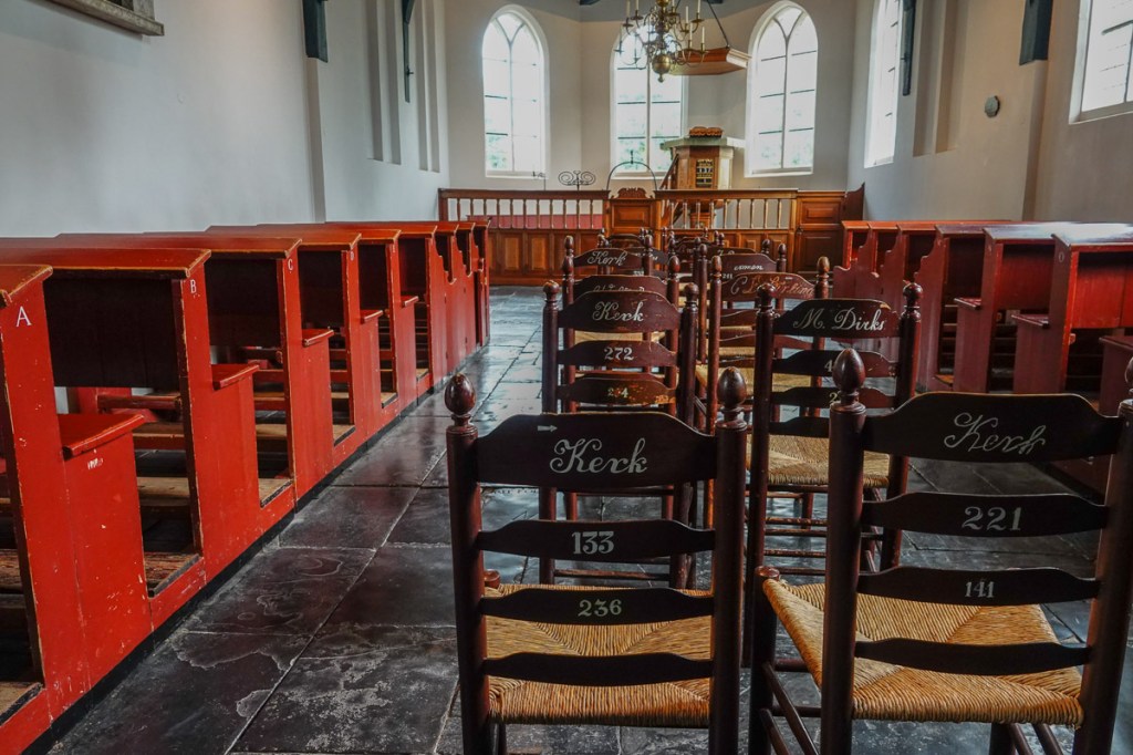Toch is het allemaal nep. Huizen komen van overal rondom de Zuiderzee, uit de Zaanstreek, uit Hindeloopen, Urk enzovoort. De kerk komt uit Den Oever, de school uit Kollum en ga zo maar door.