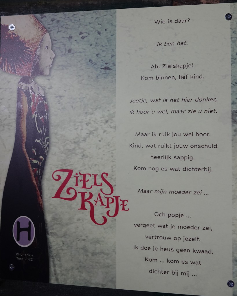 Het leek in het midden wel een hemelbed. Die associatie werd misschien wel opgeroepen doordat overal dingen hingen over Zielskapje, een moderne uitvoering van Roodkapje. In het sprookjesboekje van Zielskapje lees je een hilarisch verhaal met heel apart woordgebruik.