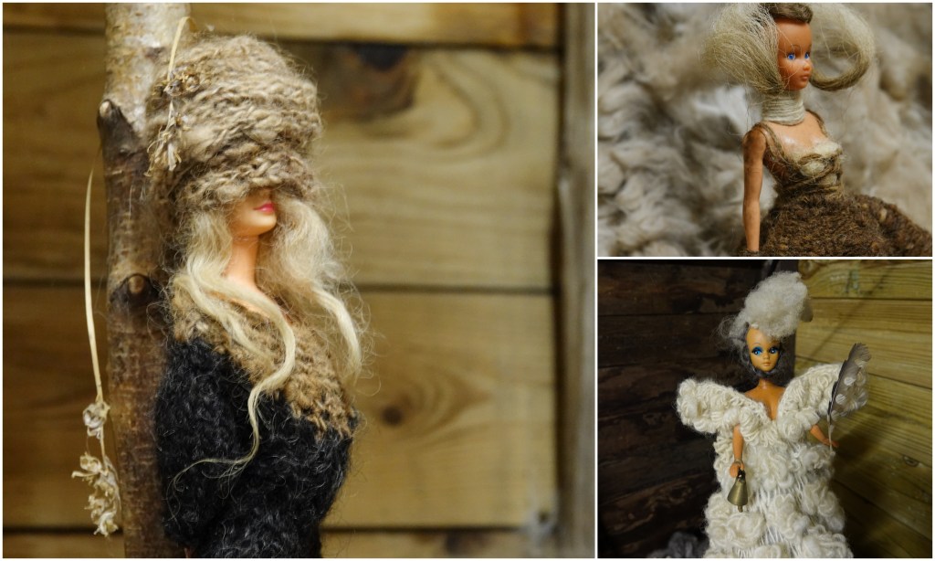 Het was binnen gevuld met een opstelling vol barbiepoppen. Je weet eerst niet wat je ziet, in dit geval veel wol.