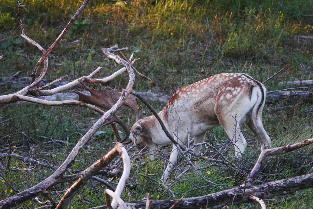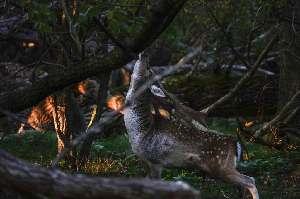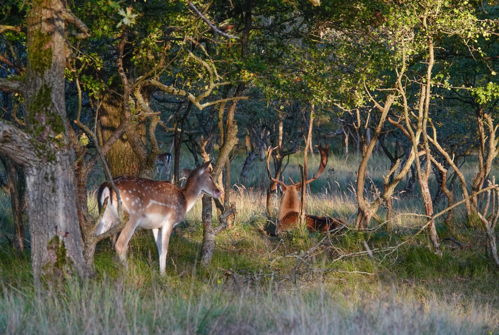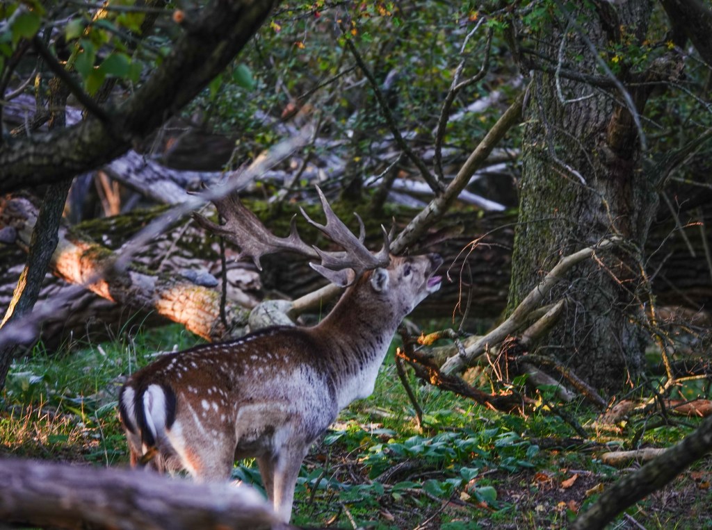 Toch mocht ik geen getuige zijn van een gevecht tussen twee mannetjes. Het bleef bij wat voorbereidend oefenen, zoals hun gewei schrapen tegen boomstammen.
