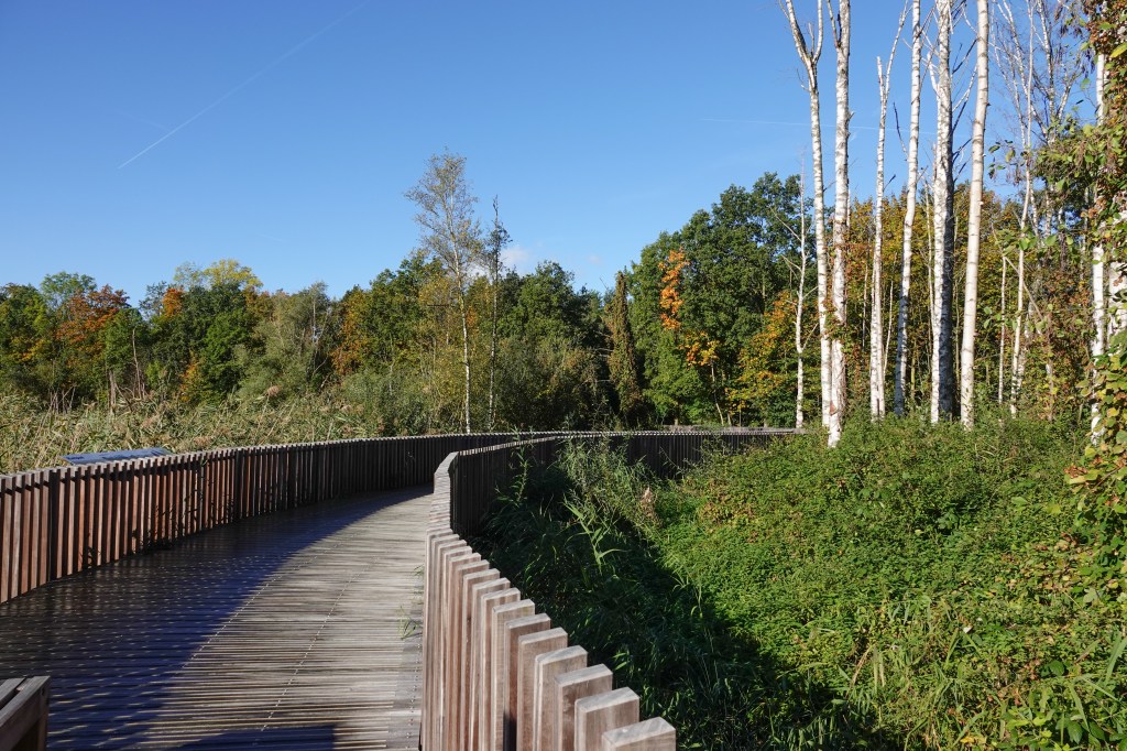 De wandelroute over de voorheen ontoegankelijke rietlanden bij de Alfa bierbrouwerij was verrassend. Via een houten loopbrug konden we het gebied in. Die rietlanden dienen als zuiveringsgebied voor het bronwater van de bierbrouwerij.