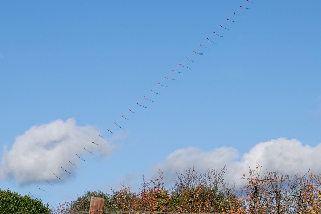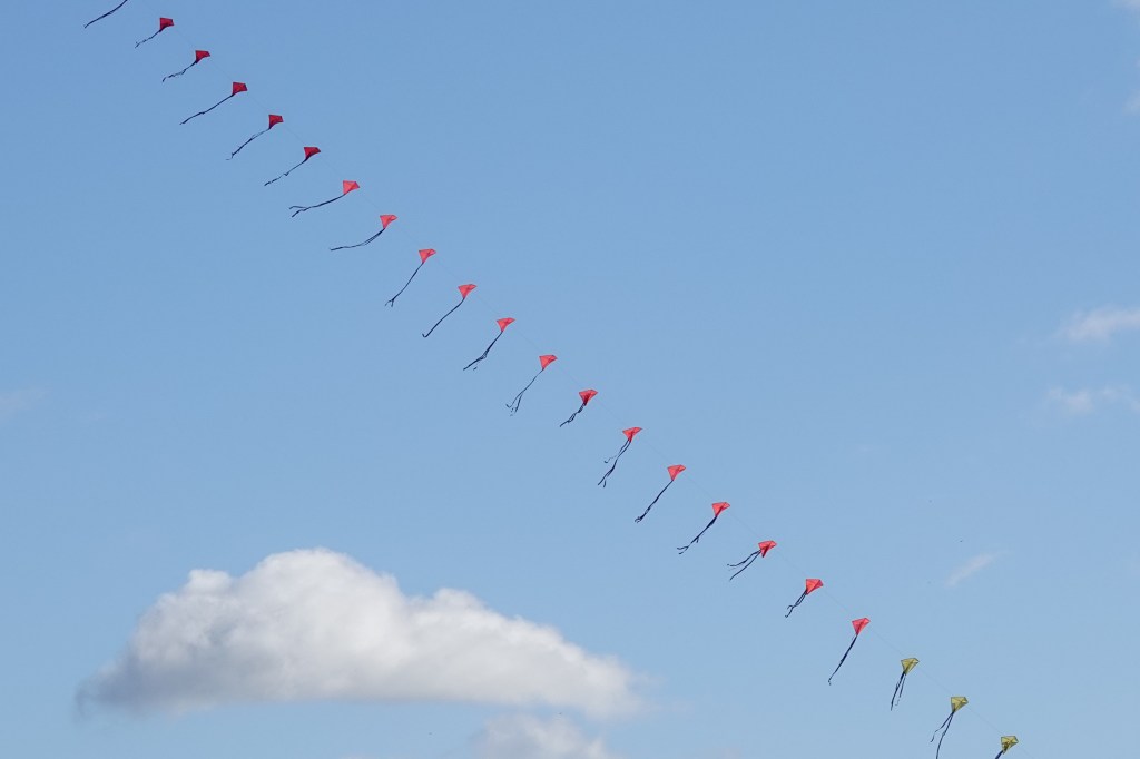 De kers op de taart werd het vliegerschouwspel tegen de blauwe lucht met hier en daar een wolk.