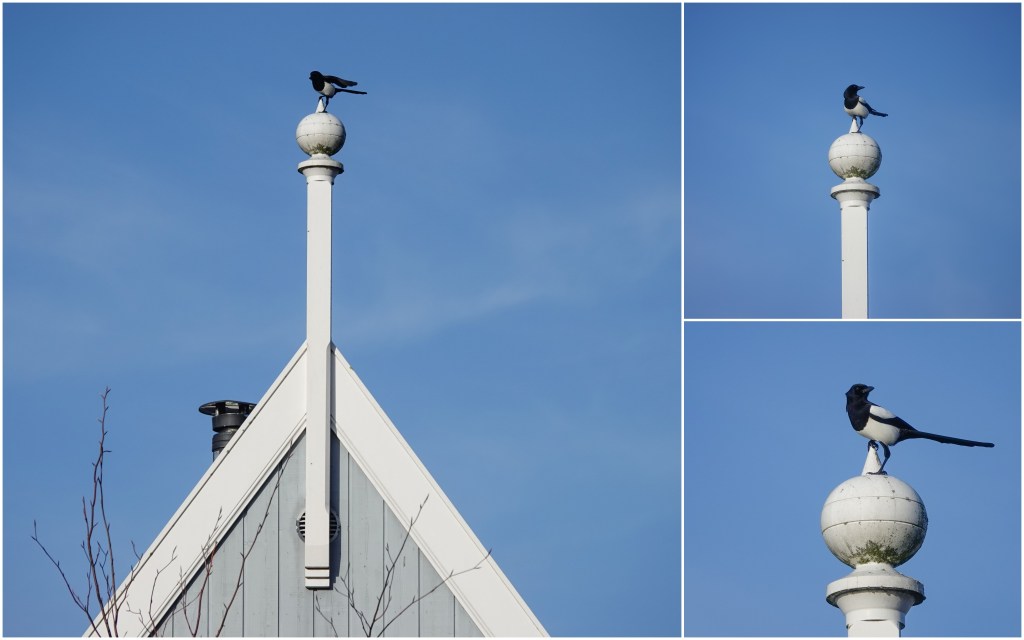 De ekster had het ook goed bekeken, boven op de makelaar.