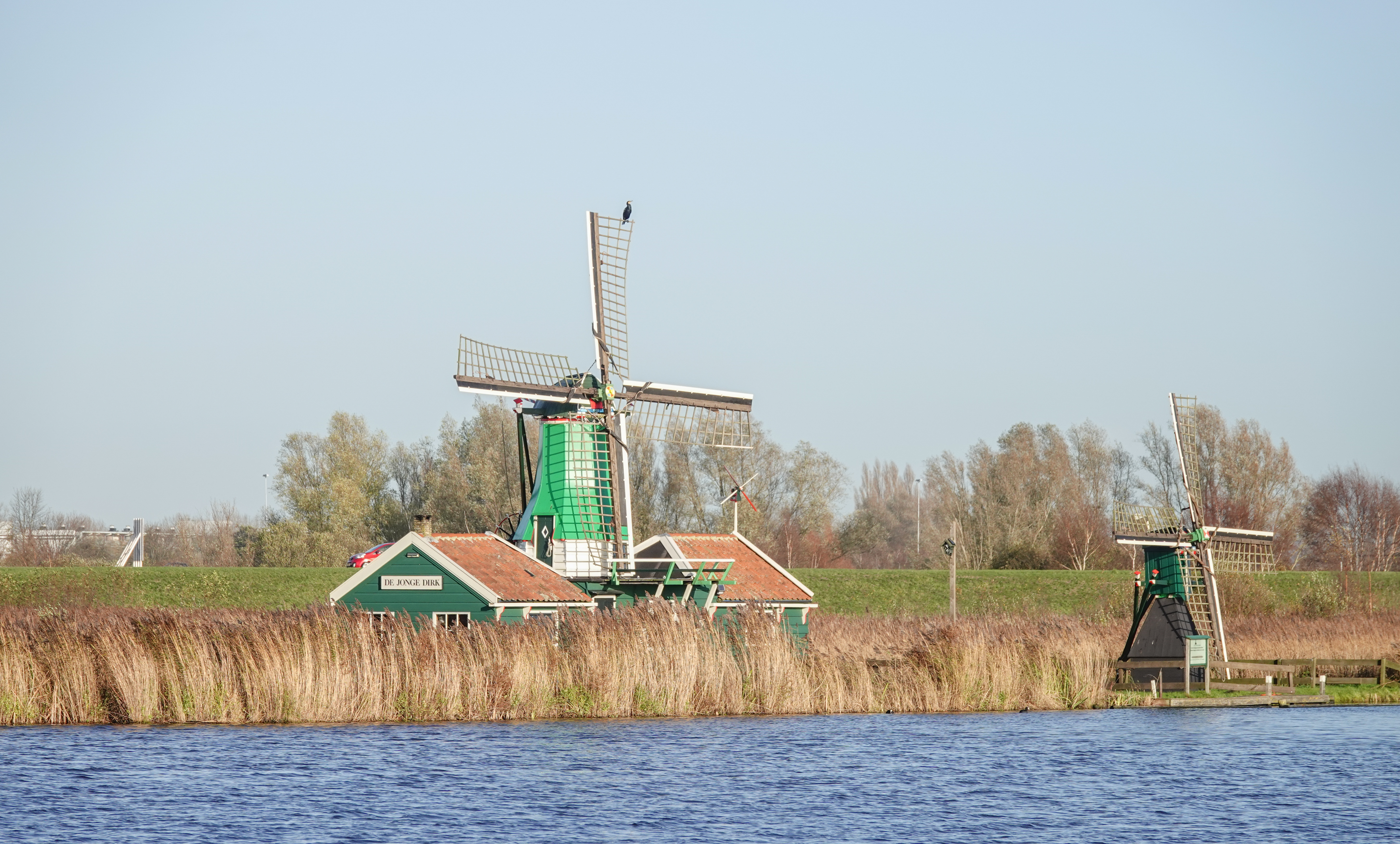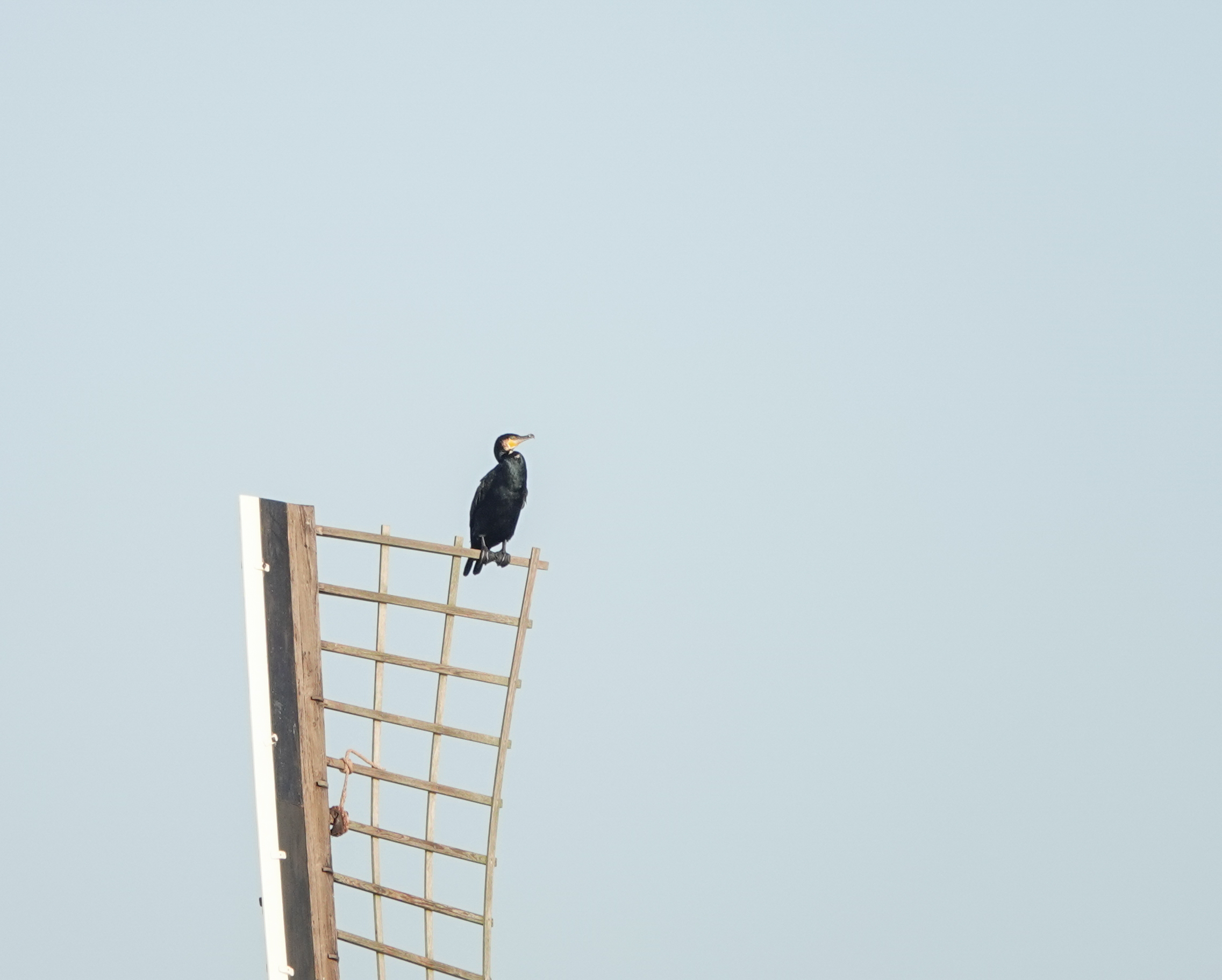 Op één middag in Westzaan trof ik al deze vogels op strategisch plekken aan met goed uitzicht. Een aalscholver op de oliemolen