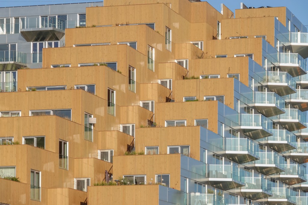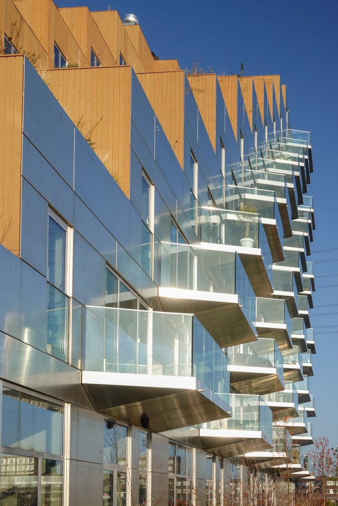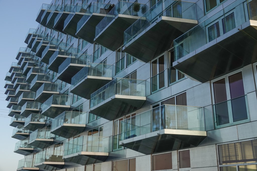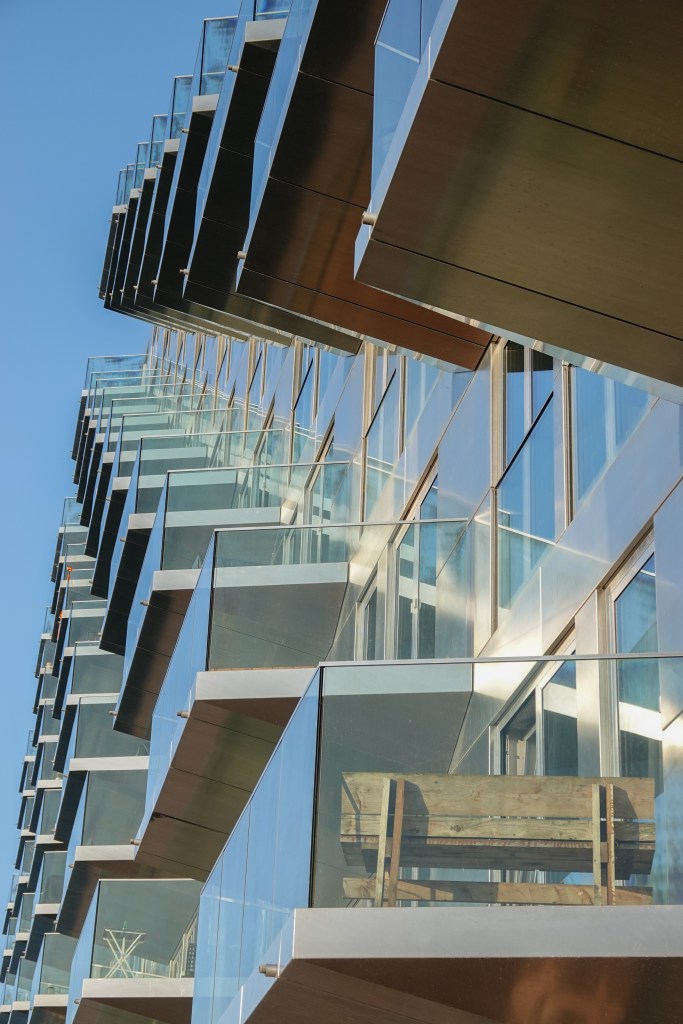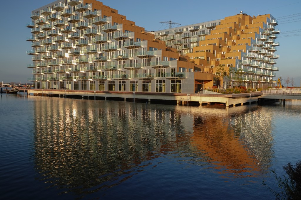 Mijn enthousiasme voor het Sluishuis is groot. Ik wil dan ook graag nog wat meer van het lijnenspel laten zien in het appartementencomplex, dat penthouses en gewone appartementen bevat, wel 10 verdiepingen hoog in het (bijna) vierkant.