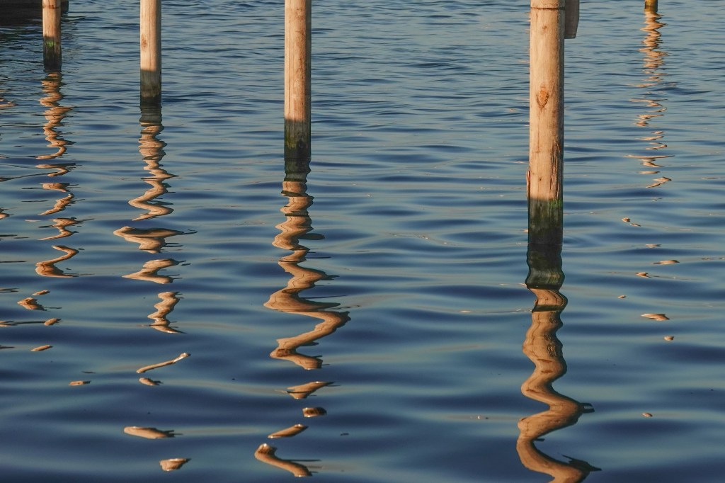 Rondom het Sluishuis zijn overal waterpartijen aangelegd, die een eilandgevoel geven aan het gebouw. Op een mooie zonnige middag, die wij troffen, toen we daar waren levert dat, naast het lijnenspel van het Sluishuis ook nog eens prachtige spiegelingen op in het water.
