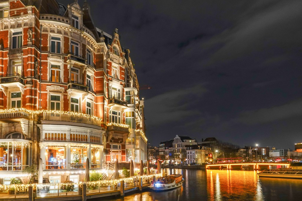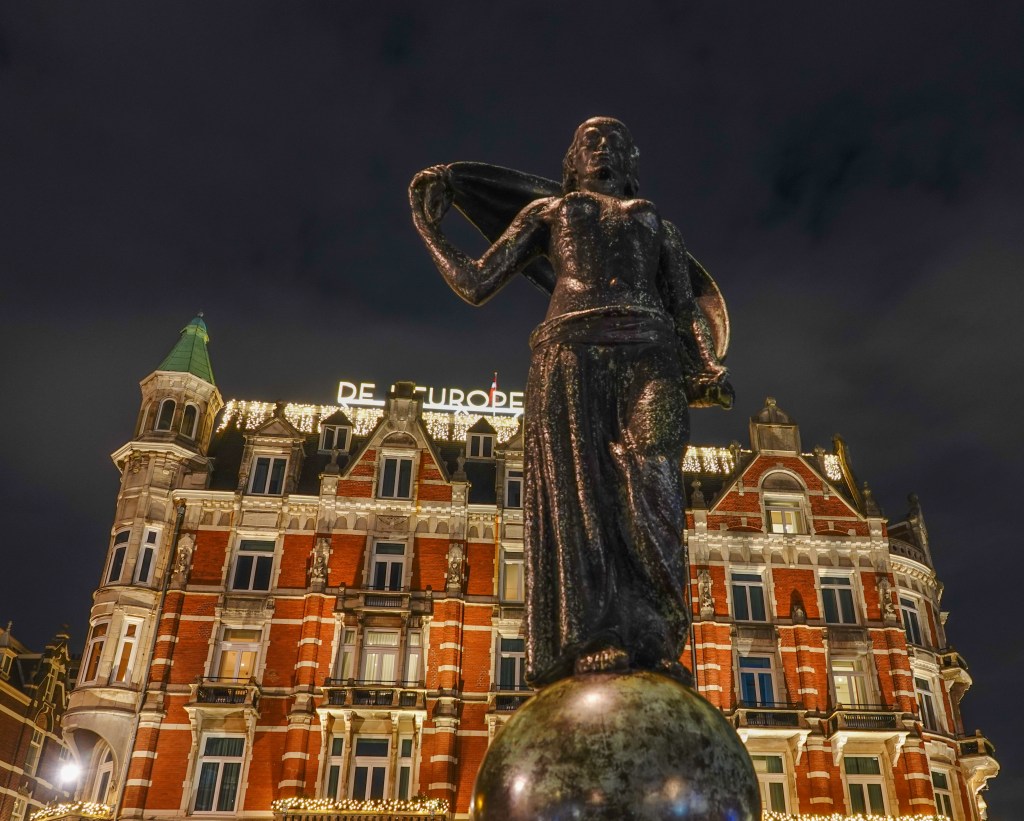 Er is alles aan gedaan om hotel De l’Europe een sprookjesachtig uiterlijk te geven, zeker ’s avonds. Buiten dat de kamers daar onbetaalbaar zijn voor mijn portemonnee (de laagst geprijsde €679, per nacht) is alle pracht en praal en luxe daarbinnen niet zo aan mij besteed. Ik kan wel genieten van de buitenkant, de uitstraling van dit gebouw, dat daar zo strategisch mooi ligt aan de Amstel in Amsterdam.
