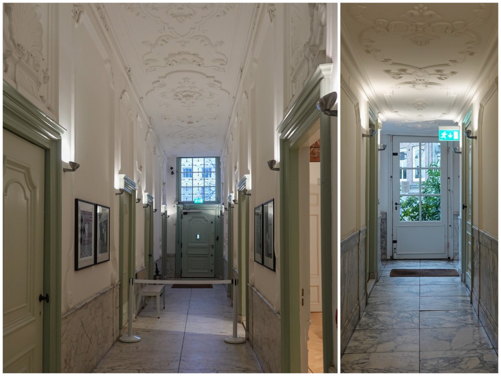 Net als Foam ligt Huis Marseille aan de Keizersgracht in Amsterdam. Ook in Huis Marseille is een Museum voor Fotografie gevestigd. Ik neem jullie mee op een rondleiding door het huis. Dit grachtenpand is namelijk op zichzelf al een bezienswaardigheid. Alle ruimtes zijn eigenlijk nog in de originele staat gebleven. Uiteraard op wat aanpassingen na, van brandweervoorschriften en zo, die noodzakelijk zijn als je publiek binnen laat. Verder proef je hier nog de sfeer van het wonen aan de gracht. Allereerst kom je binnen in een prachtige gang met marmeren vloeren en ornamenten.