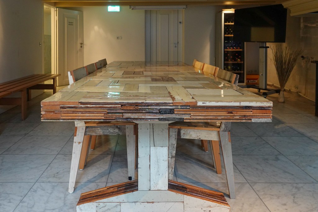 Nu stond er een moderne Piet Hein Eek tafel in de ruimte en die misstond helemaal niet.