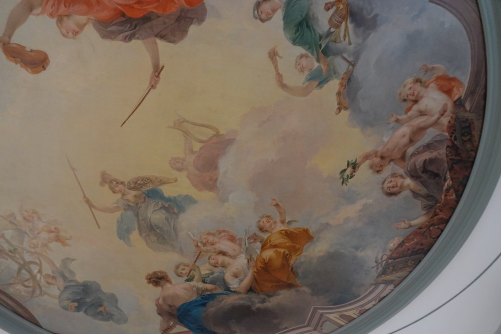 Eén zaal is helemaal prachtig aangekleed met plafondschilderingen van Minerva, godin van de wijsheid en de kunst.