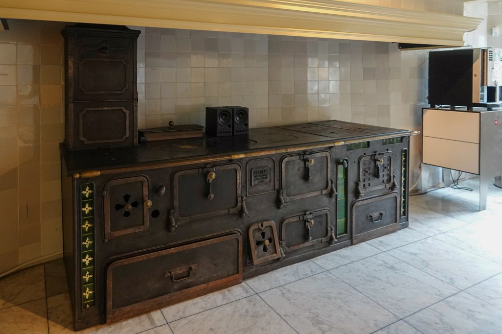 Ook was er nog een keuken met een prachtig fornuis. Ooit noodzakelijk voor het bedrijf dat zo’n huis toch was.