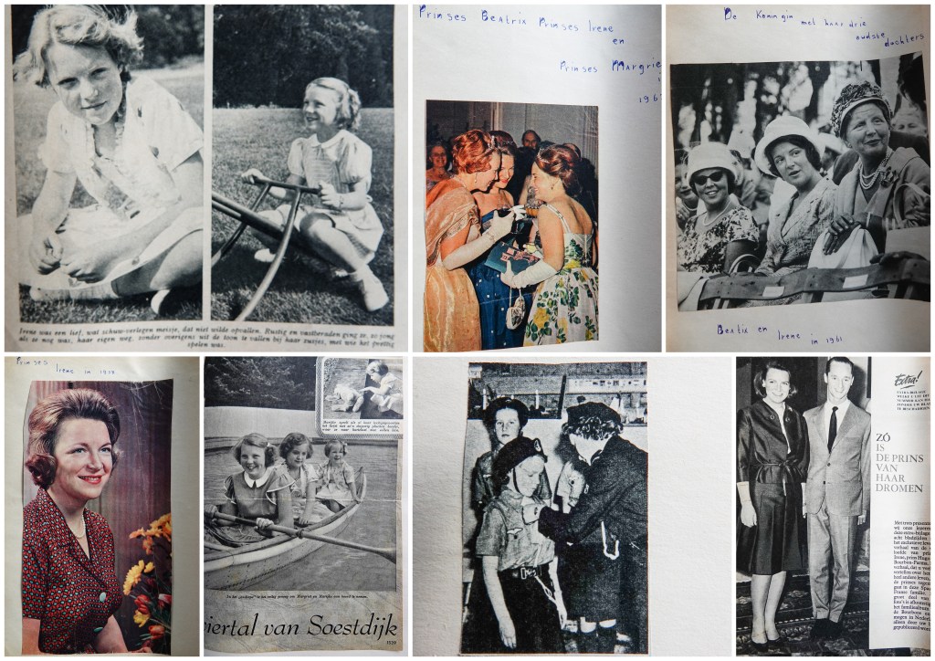 herinnerde ik me, dat ik als kind nogal koningsgezind was en ‘prinsessenplaatjes’ (zo noemde ik dat) spaarde. Zo’n verzamelwoede heb ik tegenwoordig niet meer, zij het dan, dat ik weinig weggegooid heb en dus veel bewaar. Ik ging op zoek en ja hoor, daar kwam mijn plakboek tevoorschijn, onder uit een oude doos.
