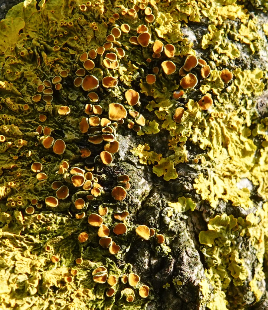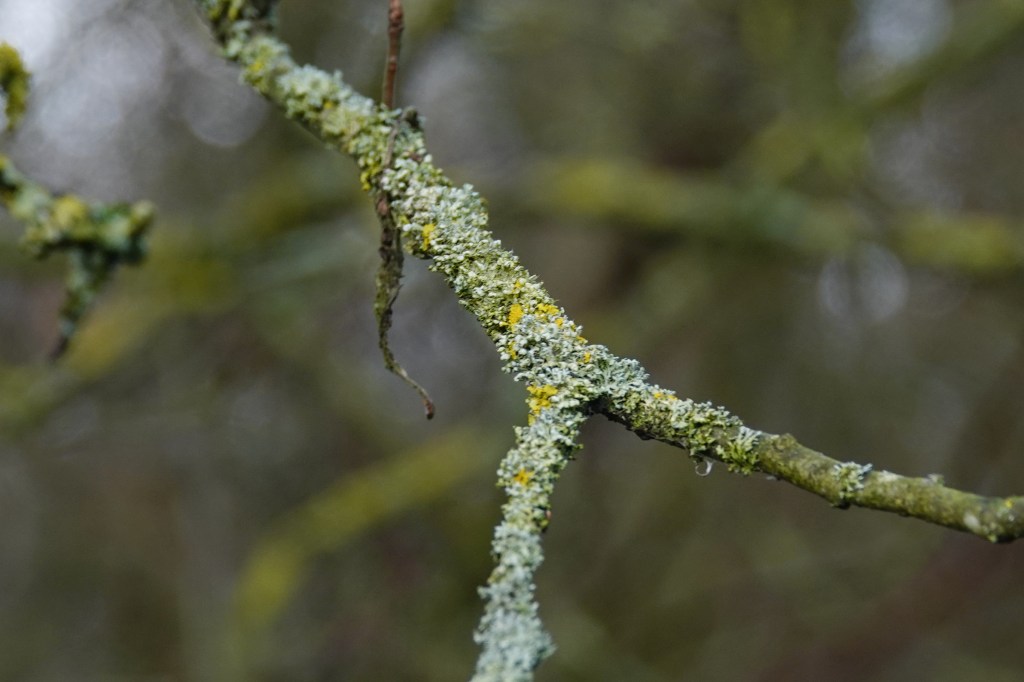 En warempel ontdekte ik al korstmossen op de bomen langs de weg. Ik hoefde er niet eens het bos voor in.