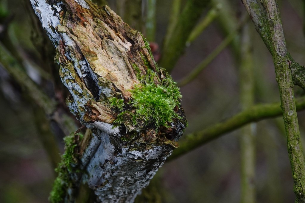 Omdat ik graag wandel, maar niet altijd in de gelegenheid ben om een nieuwe route te gaan ontdekken, loop ik bij huis vaak hetzelfde rondje. Weliswaar is er geen dag hetzelfde, maar toch gaat het me soms wel tegen staan, temeer omdat ik graag fotografeer en daarmee niet in herhaling wil vallen. Geïnspireerd door een paar fotomaatjes bedacht ik, dat ik mijn aandacht eens ging verleggen naar de korstmossen, eigenlijk niet eens echt wetende of er op mijn traject wel korstmossen te vinden zouden zijn. Toch moest het landschappelijke lijnenspel ook even op de foto.