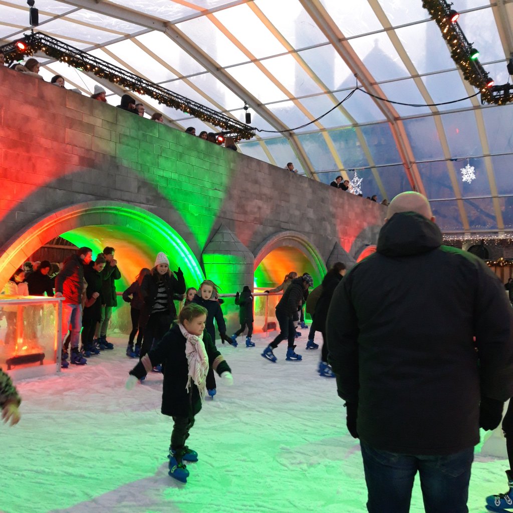 Vervolgens kwam ik dit keer de oude Romeinse brug tegen met schaatsers die onder de brug doorrijden. De Maas vol ijs?