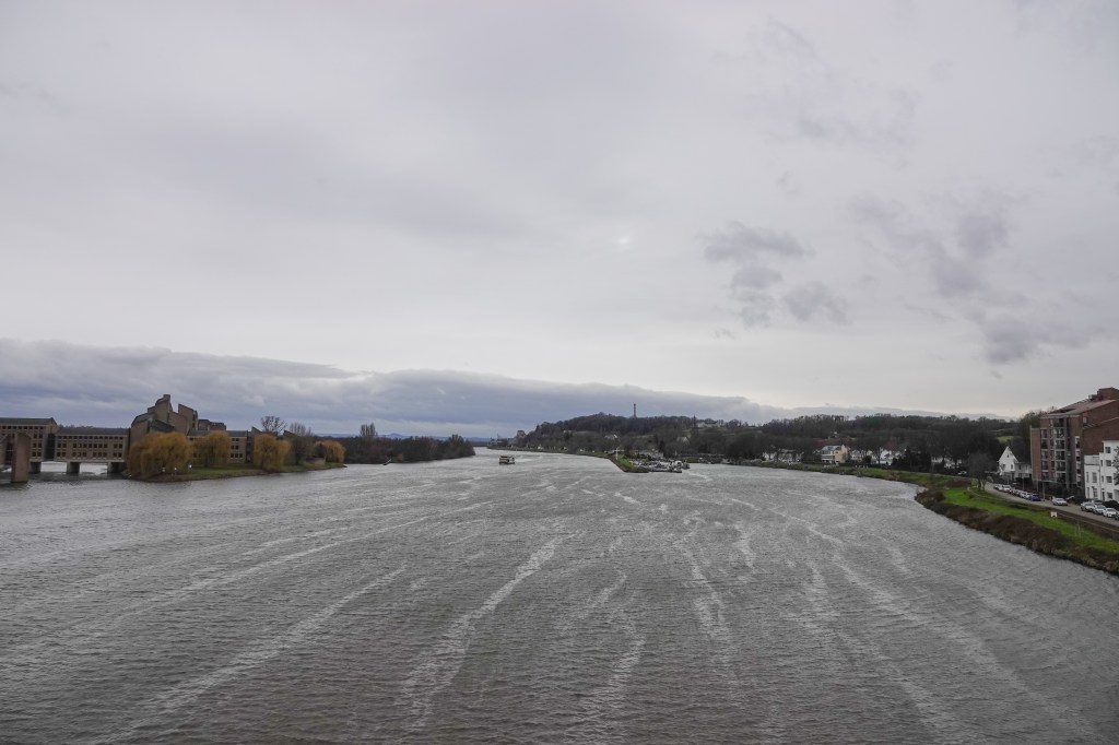 De derde brug, De Kennedybrug gebruikte ik ook als kortste route om naar de Pieterberg te lopen. Het is een drukke verkeersweg, weinig fotogeniek blijkbaar, want ik vergat hem op de foto te zetten. Wel zette ik de Maas op de foto vanaf die brug. In zuidelijke richting is er geen brug maar te bekennen. (tot in Lanaken)
