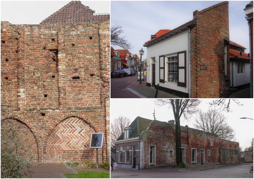 Oude monumenten zijn er ook. Een restant van een kloostermuur alsook uit latere tijden huizen gemaakt van de vestingmuren.