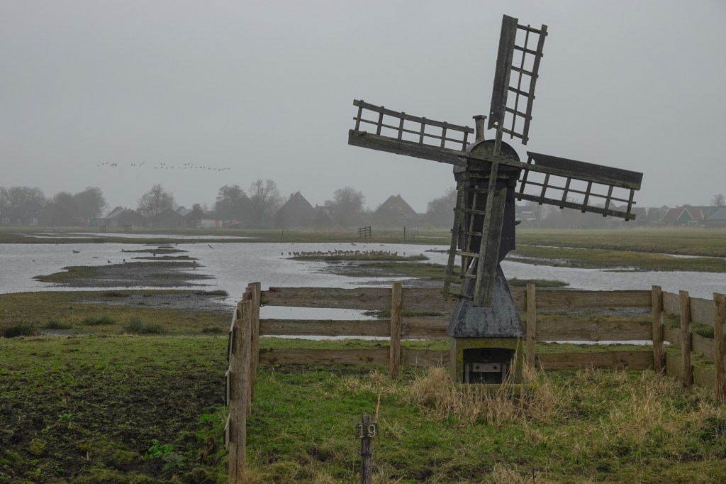 Als je hebt afgesproken moet je ook gaan, ongeacht het weer. Mijn zwager en ik verwachtten een beetje soortgelijk weer als de dag ervoor.(een zonnetje dus) Helaas was het een grijze dag, wat de fotokwaliteit niet ten goede zou komen. Maar we gingen toch. We willen zo graag kijken welke vogels alweer zijn neergestreken in het Noord-Hollandse land. Daarbij kwam, dat ik een dag eerder al de roep van de grutto bij ons dorp hoorde. We gingen naar Warder om onze kans om iets te zien te vergroten. Het land rondom het lintdorp aan het IJsselmeer staat erom bekend, dat er veel vogels te zien zijn.