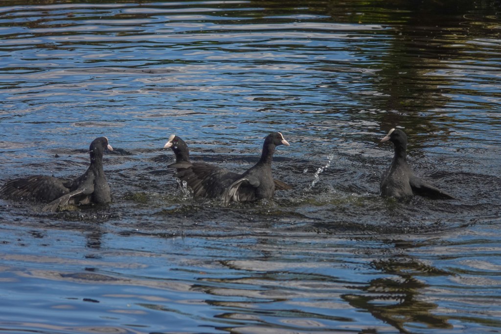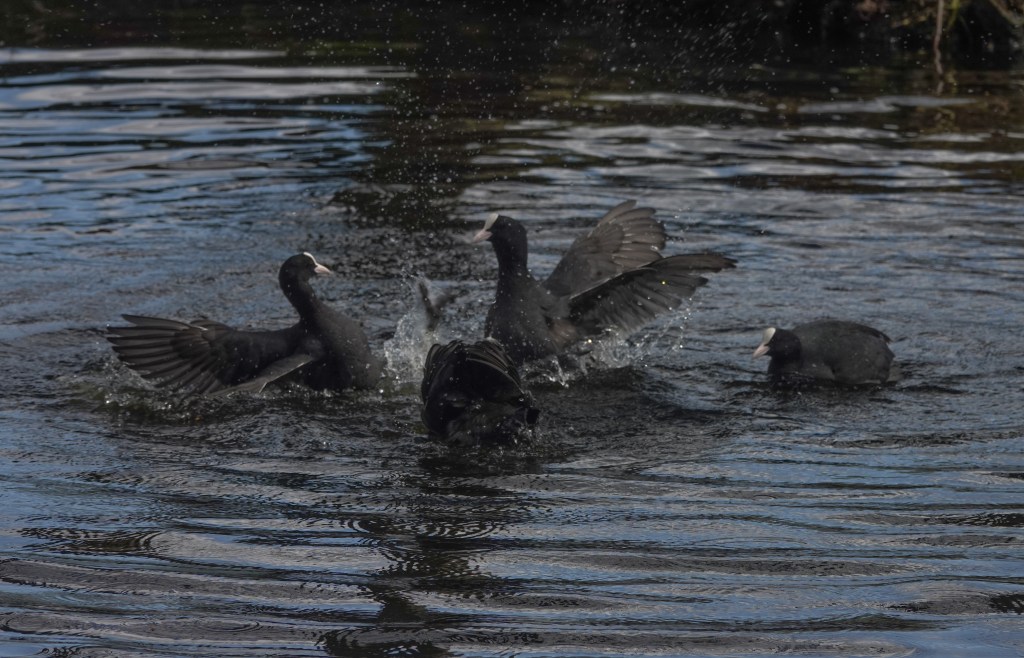 De rietkippen zijn nog niet zover. Dit viertal was nog aan het uitvechten wie met wie mocht.