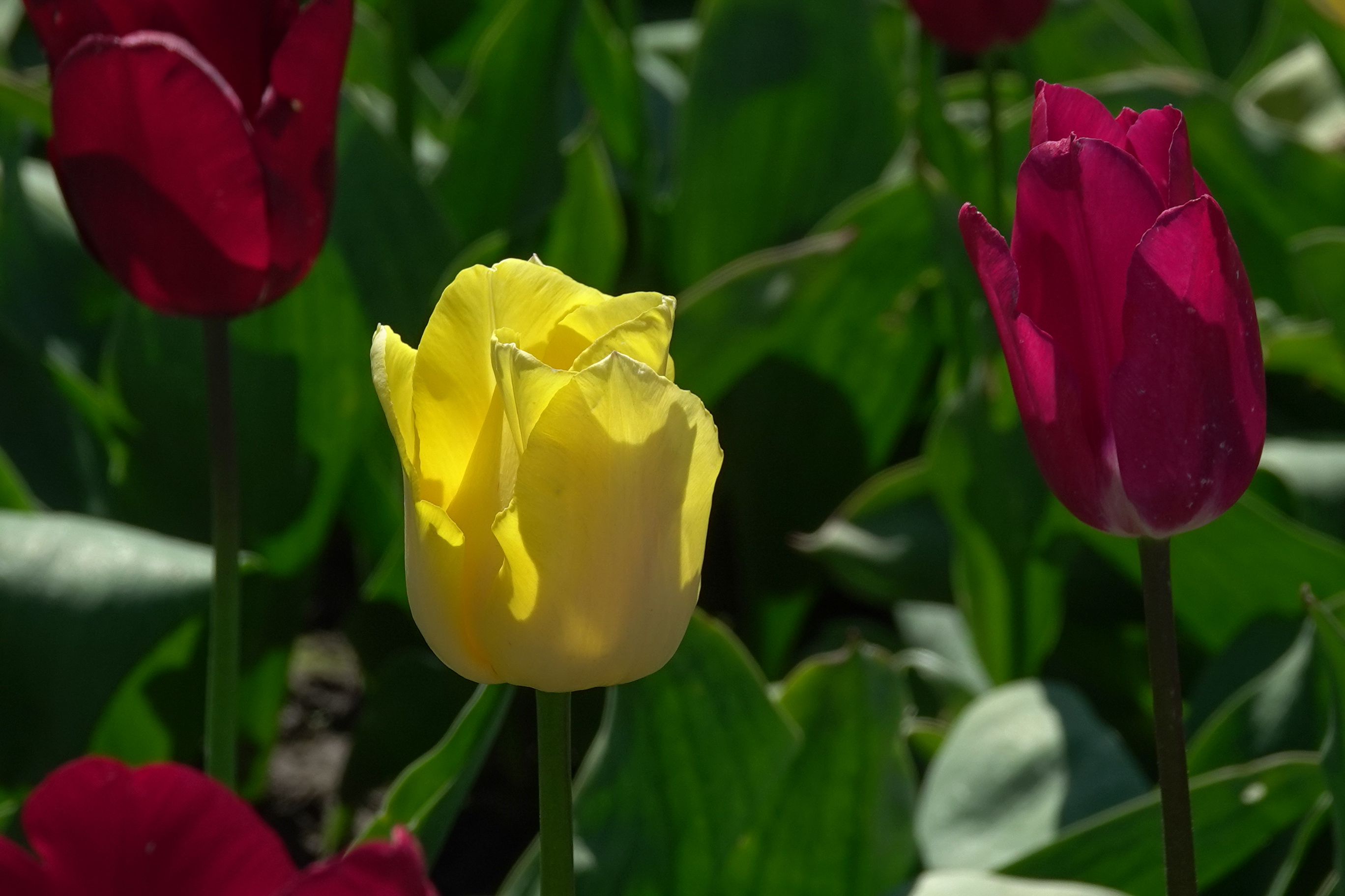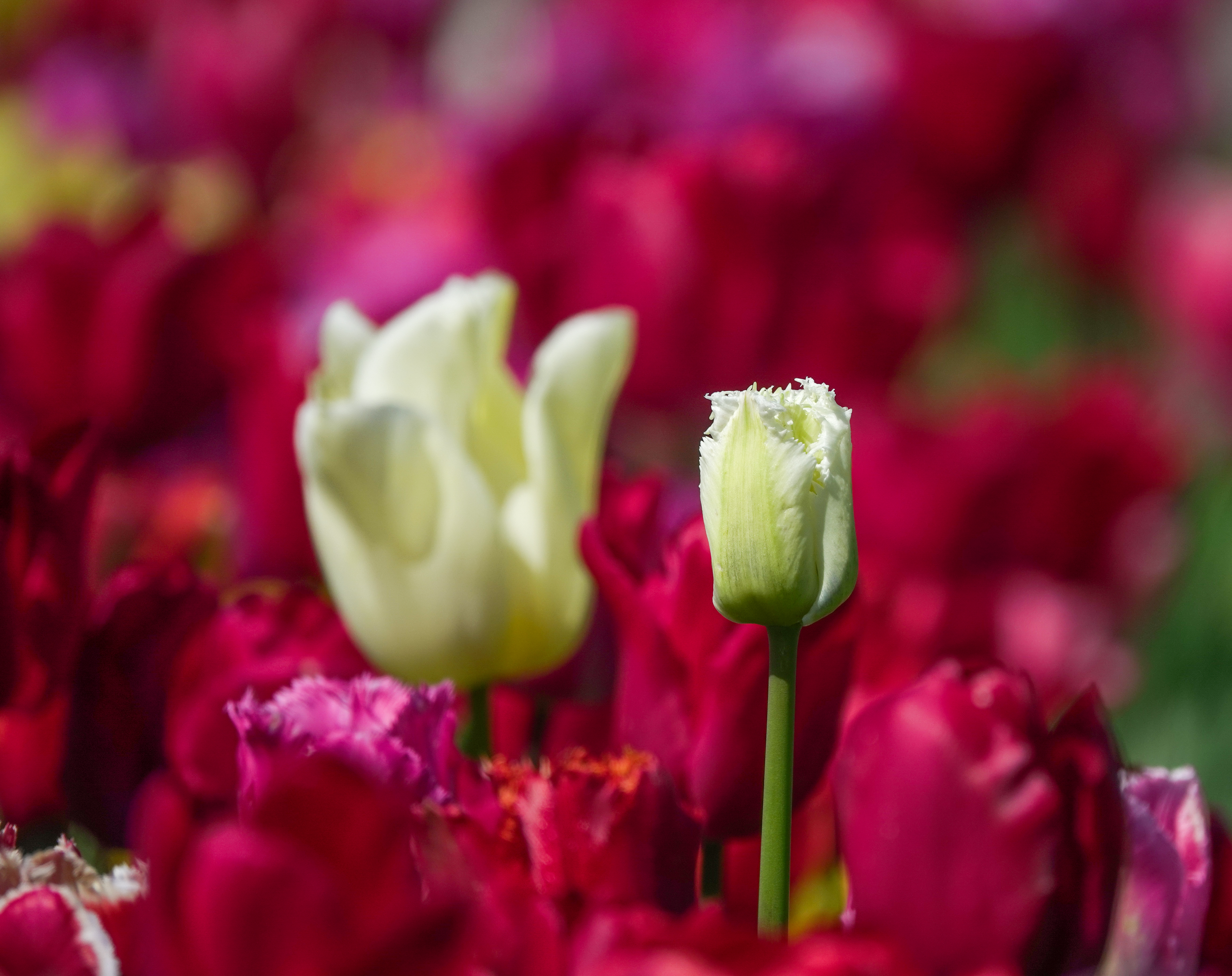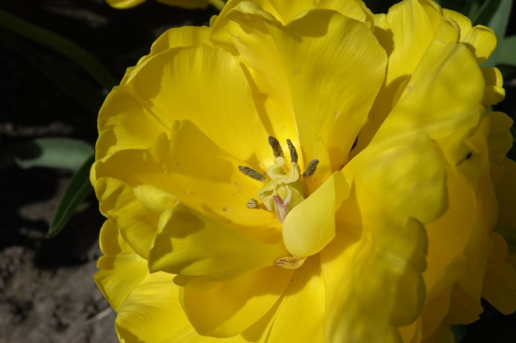 De tulpen, die hier stonden waren van een bijzondere soort. De baas vertelde dat het een dubbele tulp was. Je ziet twee keer boven elkaar stamper en stuifmeeldraden zitten.