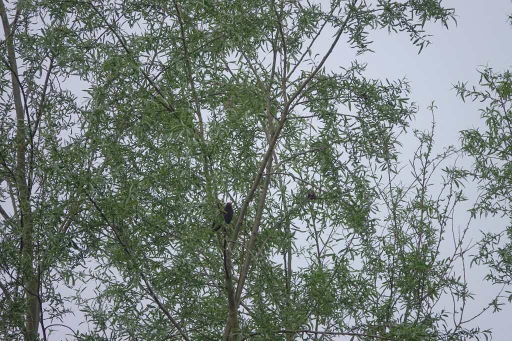 Af en toe stonden we stil aan de bosrand en luisterden. Onvoorstelbaar, die kundigheid van die IVN ers. Ik zag alleen een merel hoog in de boom. Het verse gebladerte verhindert ook, dat je veel vogels ziet, laat staan, dat het je lukt om er een foto van te maken.