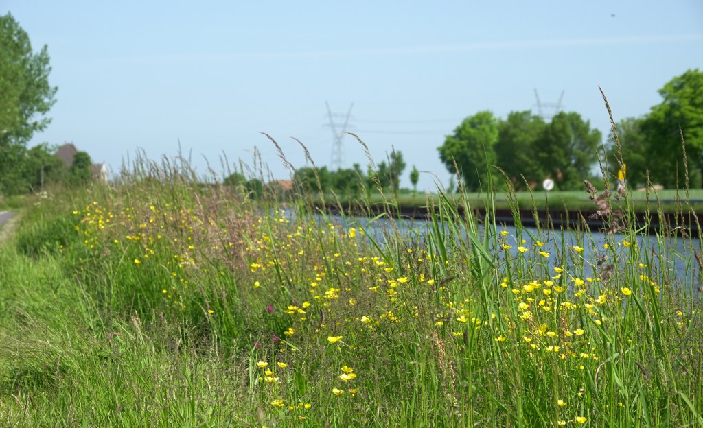 Het is inmiddels een jaarlijkse traditie: op de eerste Pinksterdag wordt in ons dorp een sportief evenement van jewelste georganiseerd. Het festijn is niet alleen voor de topsporters onder ons, maar er is voor elk wat wills. Zo kun je fietsen, hardlopen en wandelen in diverse afstanden. Je kunt ook nog een halve marathon lopen, als je dat wilt. Ik koos voor een wandeling van 10 km. De route bleek langs de grote weg te gaan over het fietspad. Daar had ik geen zin in. Dus nam ik de pont en liep de weg parallel aan de route, maar aan de rustige kant van het Noord-Hollands kanaal.