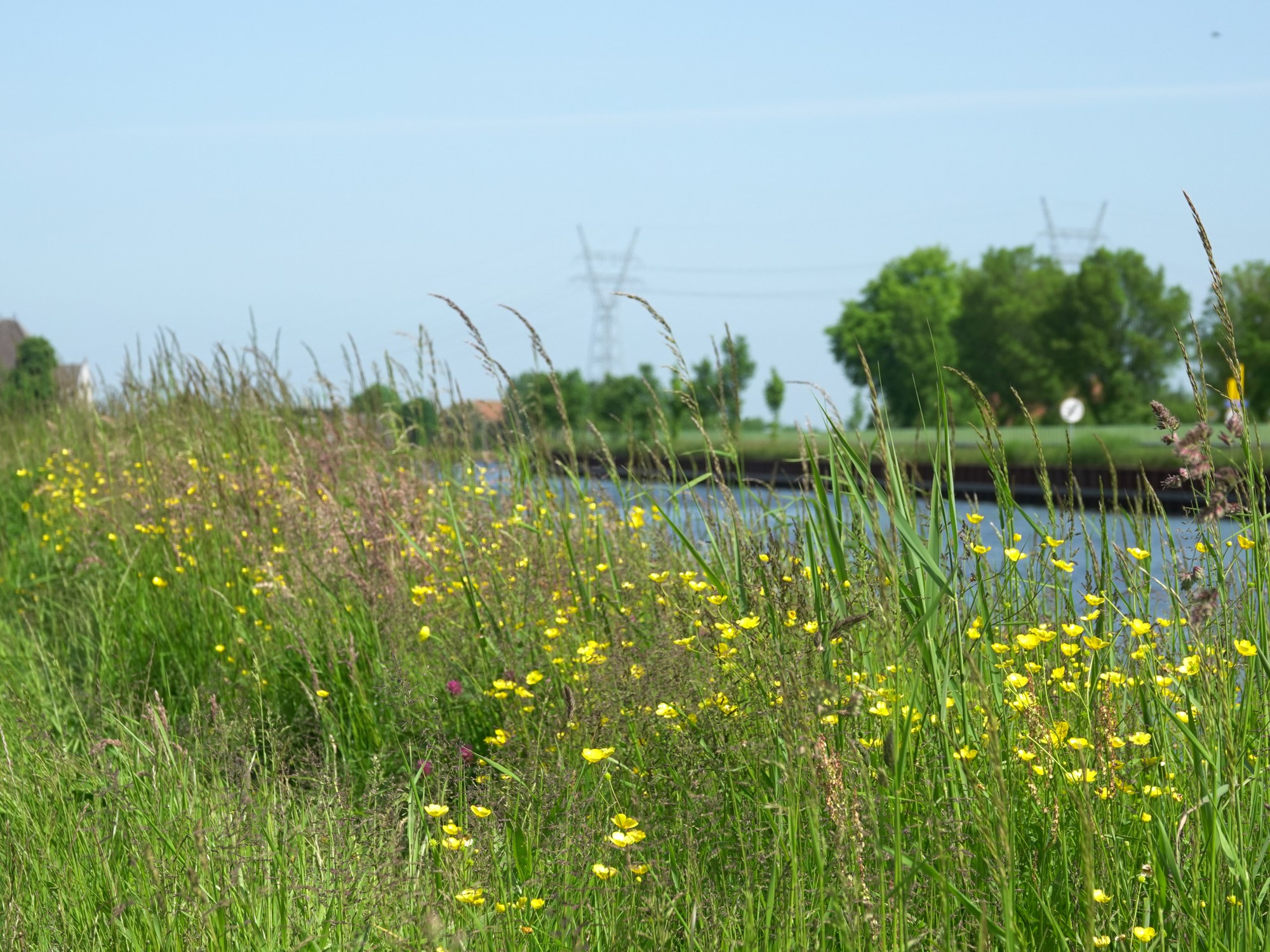 Het is inmiddels een jaarlijkse traditie: op de eerste Pinksterdag wordt in ons dorp een sportief evenement van jewelste georganiseerd. Het festijn is niet alleen voor de topsporters onder ons, maar er is voor elk wat wills. Zo kun je fietsen, hardlopen en wandelen in diverse afstanden. Je kunt ook nog een halve marathon lopen, als je dat wilt. Ik koos voor een wandeling van 10 km. De route bleek langs de grote weg te gaan over het fietspad. Daar had ik geen zin in. Dus nam ik de pont en liep de weg parallel aan de route, maar aan de rustige kant van het Noord-Hollands kanaal.