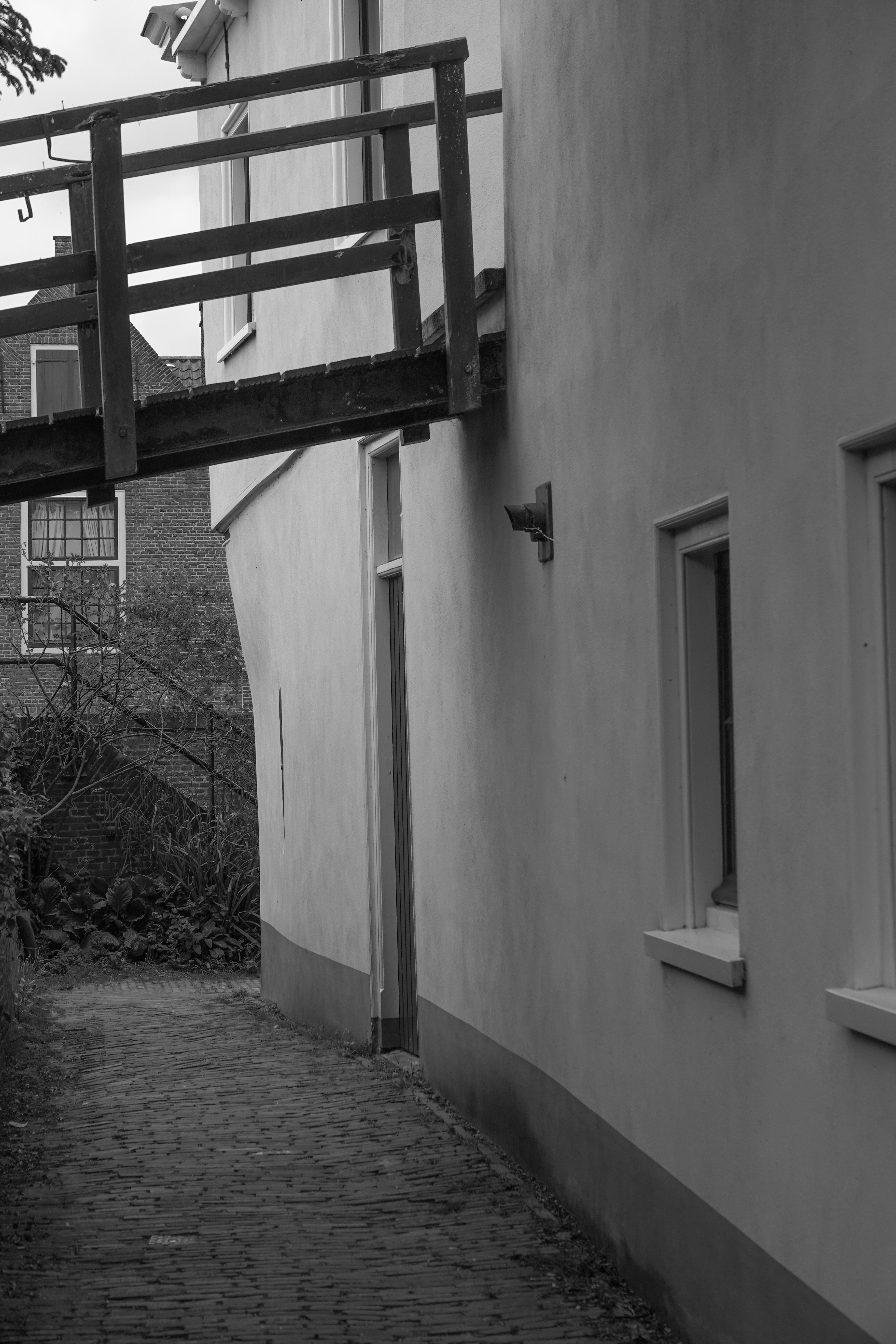 Aan ons foto-uitje was een opdracht gekoppeld, die we aan onszelf oplegden. We gingen werken met een 50 mm lens. Dat houdt in, dat je niet inzoomt, maar als je dat wel zou willen, om je beeld naar voren te halen, of vice versa, dan moet je dat effect bereiken met je benen. Ik heb geen 50 mm lens en probeerde dezelfde situatie na te bootsen met mijn camera. De andere F-maatjes schroefden hun lens op de camera bij het binnenwandelen van Spaarndam en daar ging het los. Minimaal 5 van de gemaakte foto’s met de 50 mm lens moesten we in zwart-wit plaatsen op onze FB pagina. Hier een selectie van mijn zww dorpsgezichten.