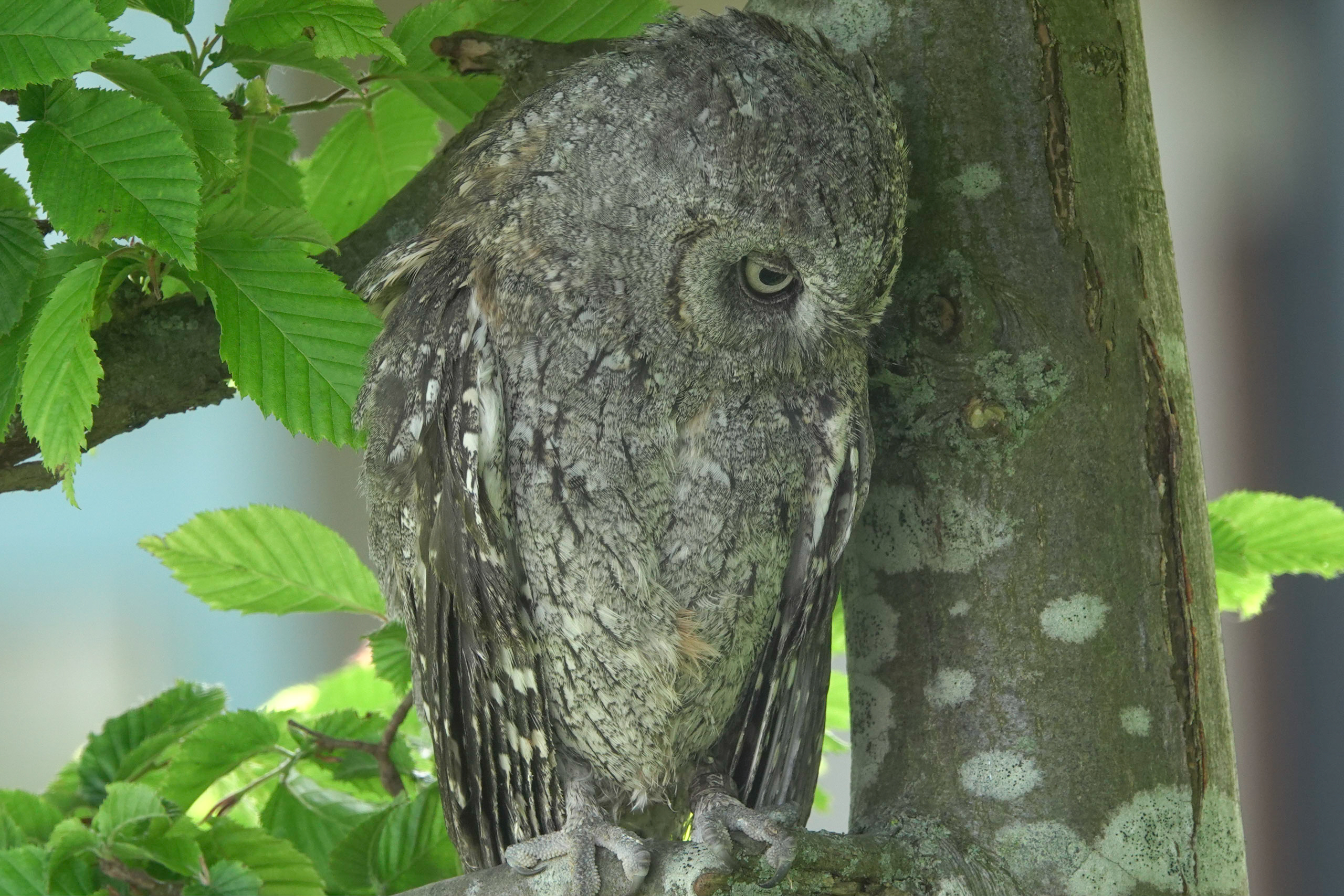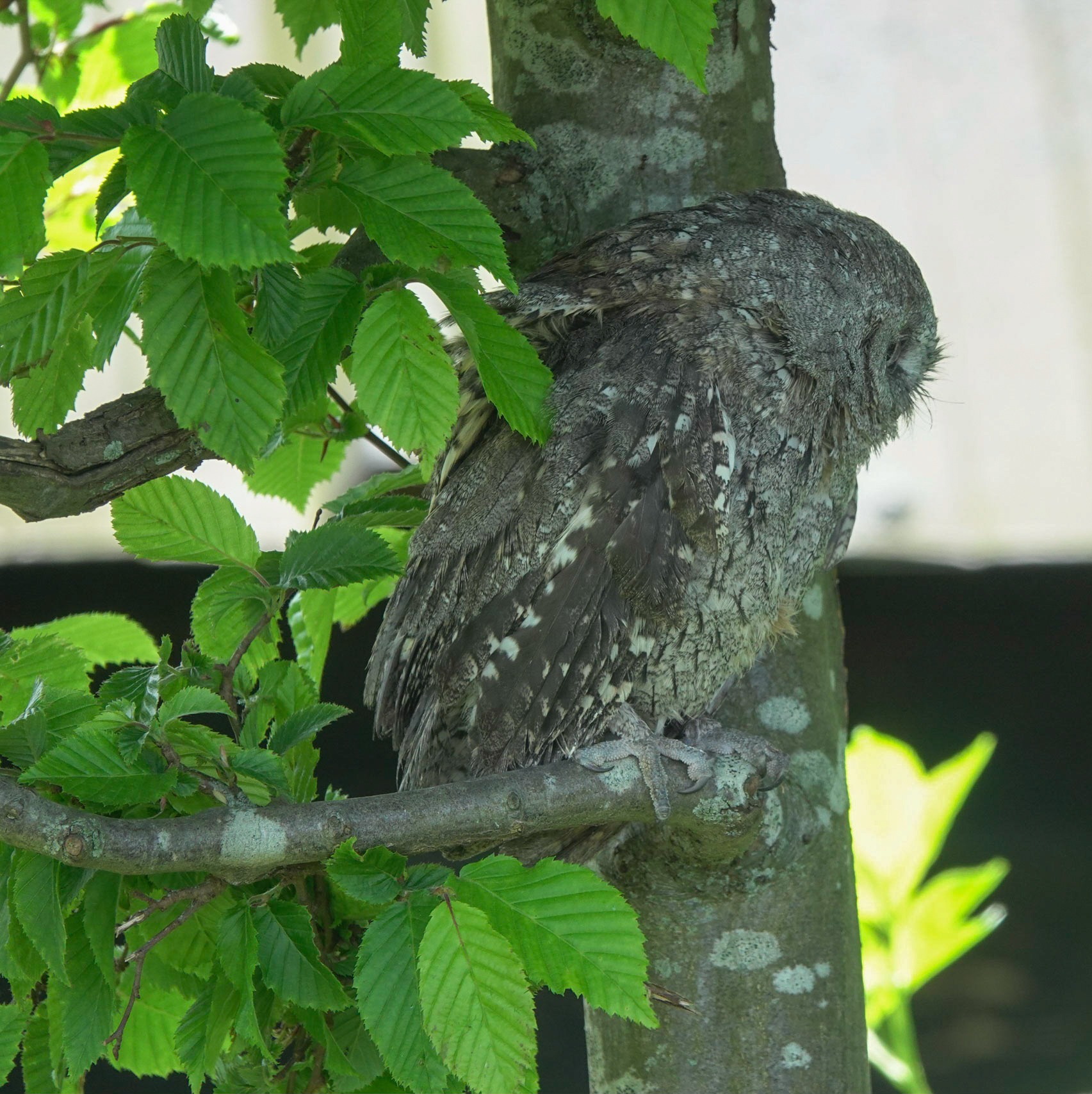 van een boom. Soms zijn ze ook overdag te zien als ze lastig gevallen worden door kleinere vogels die