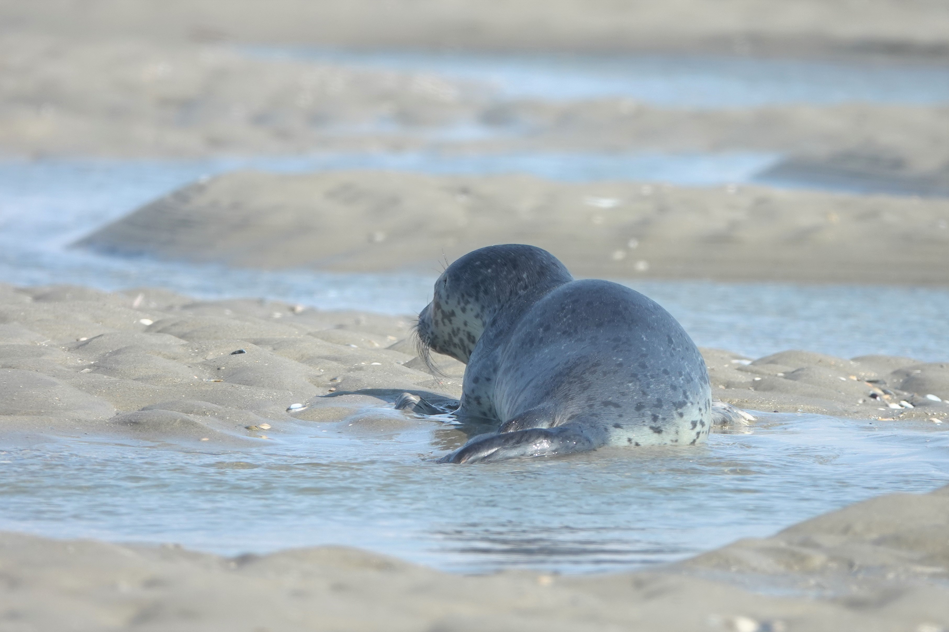 Nadat we wat strandvondsten hadden gedaan, vertrokken we weer en konden de zeehonden zich herenigen met het jong.