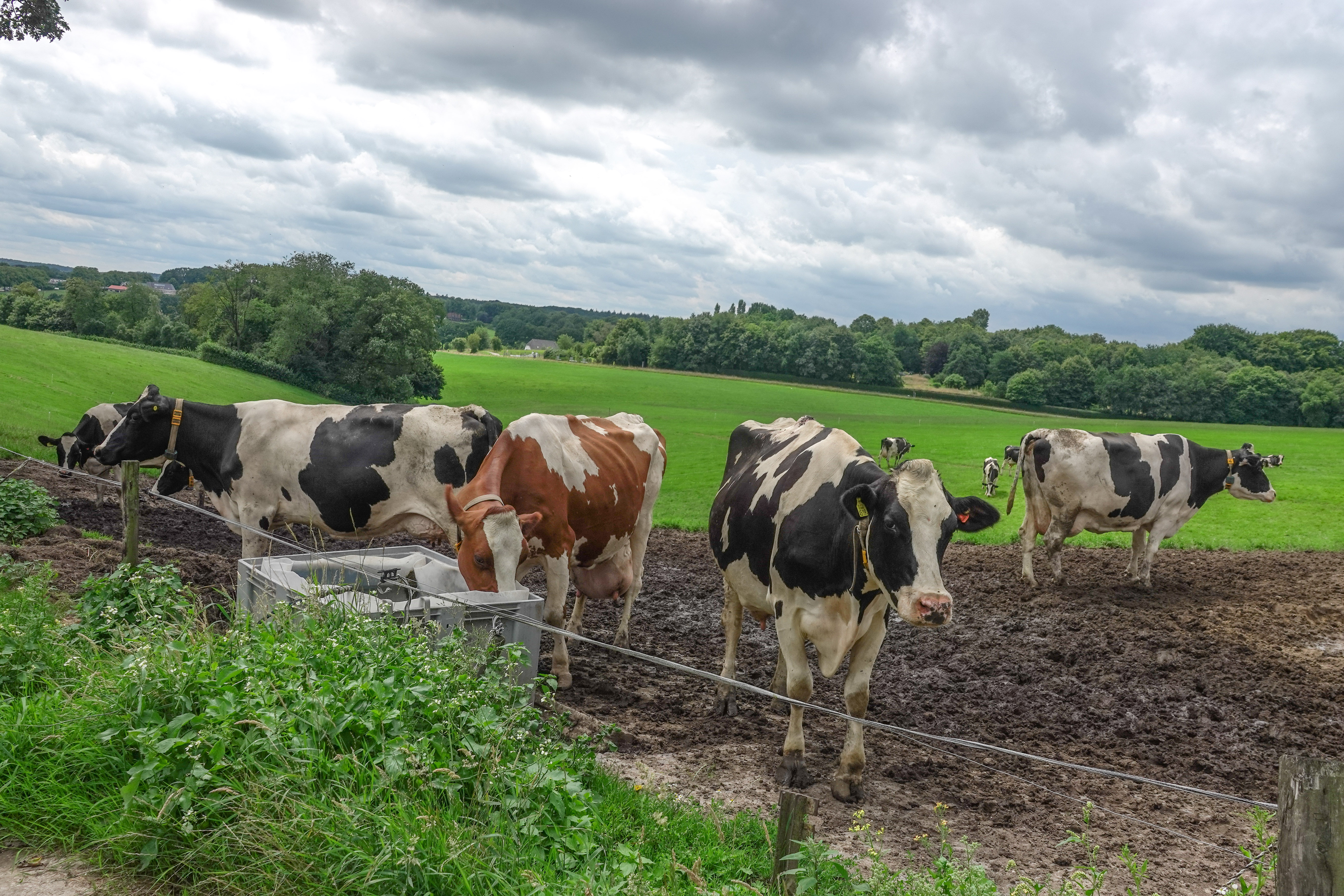Helaas werd de lucht al dreigender en met het weerbericht (code oranje) in gedachte hoopten we er het beste van. Inmiddels hadden we de bosrand bereikt. Opeens zagen we dat de daar grazende koeien ‘en masse’ aan de wandel gingen, allemaal dezelfde kant op. Dat had voor ons een waarschuwing moeten zijn.