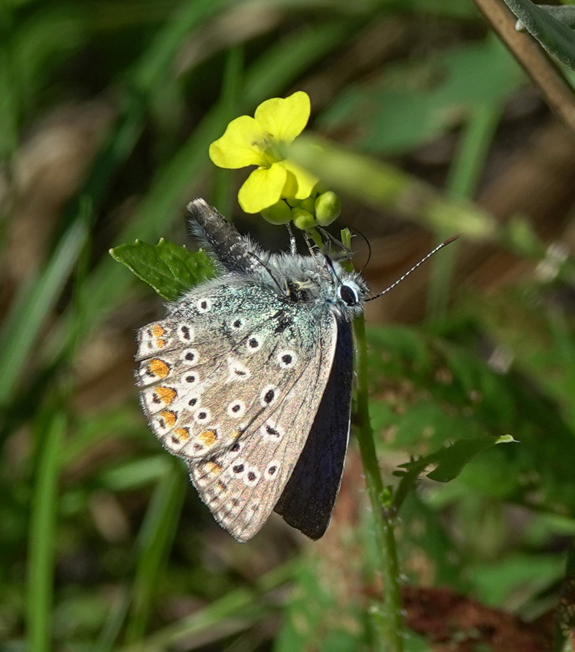 Wat een mooie vlinder, dat blauw! Vrouwtje wat minder blauw, dat wel.